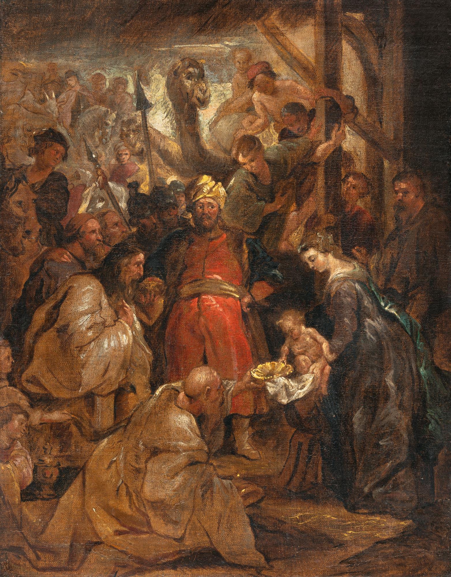 Die Darstellung folgt der 1624 entstandenen Ölskizze Peter Paul Rubens, heute in der Wallace Collection, London (Inv.-Nr. P 519). Diese war das Modelllo für das große Altarbild in der Abteikirche St. Michael in Antwerpen, jetzt im Königlichen Museum der Schönen Künste, Antwerpen.