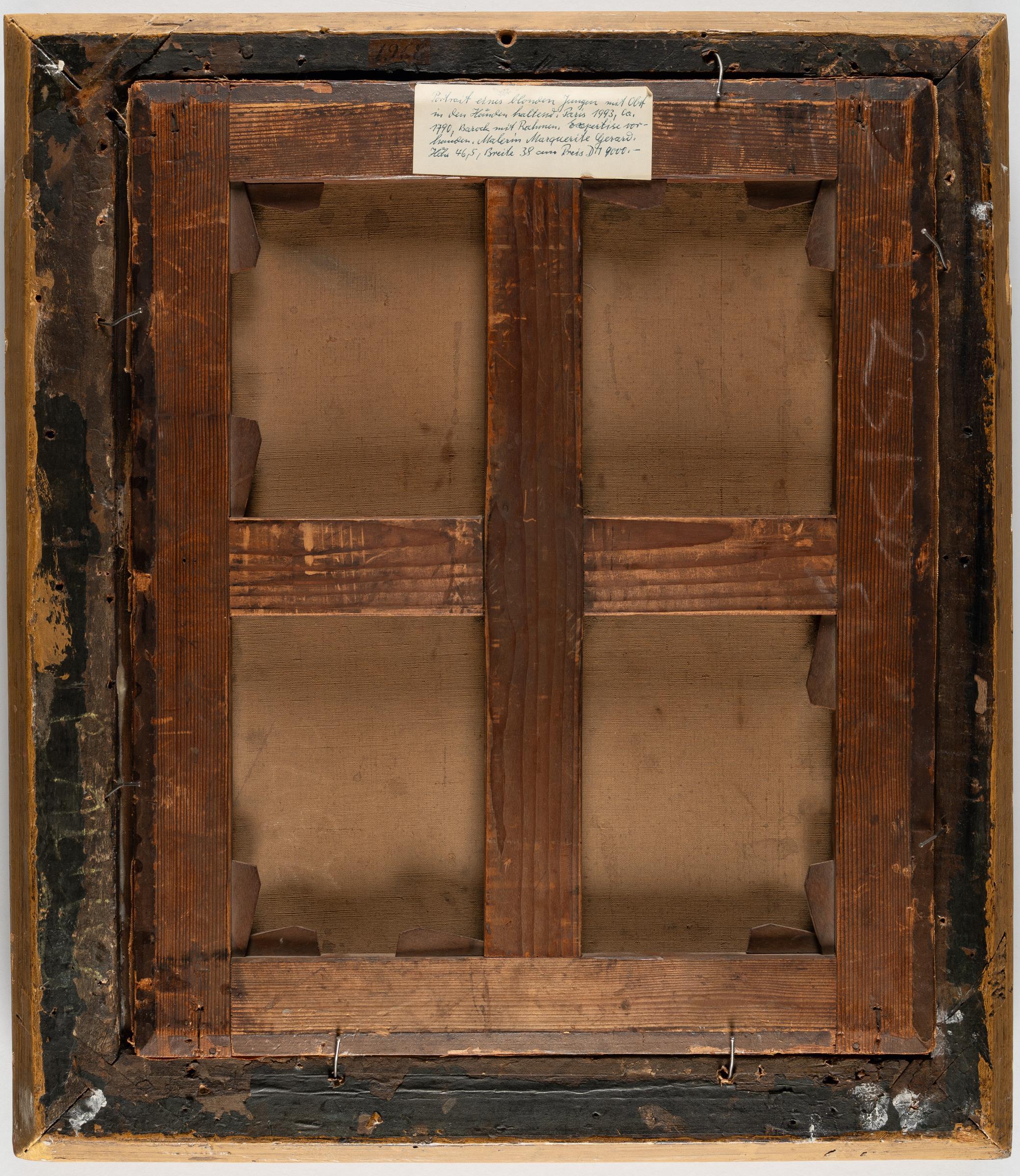 Öl auf Leinwand (doubliert). (Um 1790). 46,4 x 39 cm. Verso auf Rahmenrückseite auf altem Klebezettel nummeriert „1968“. Gerahmt.
