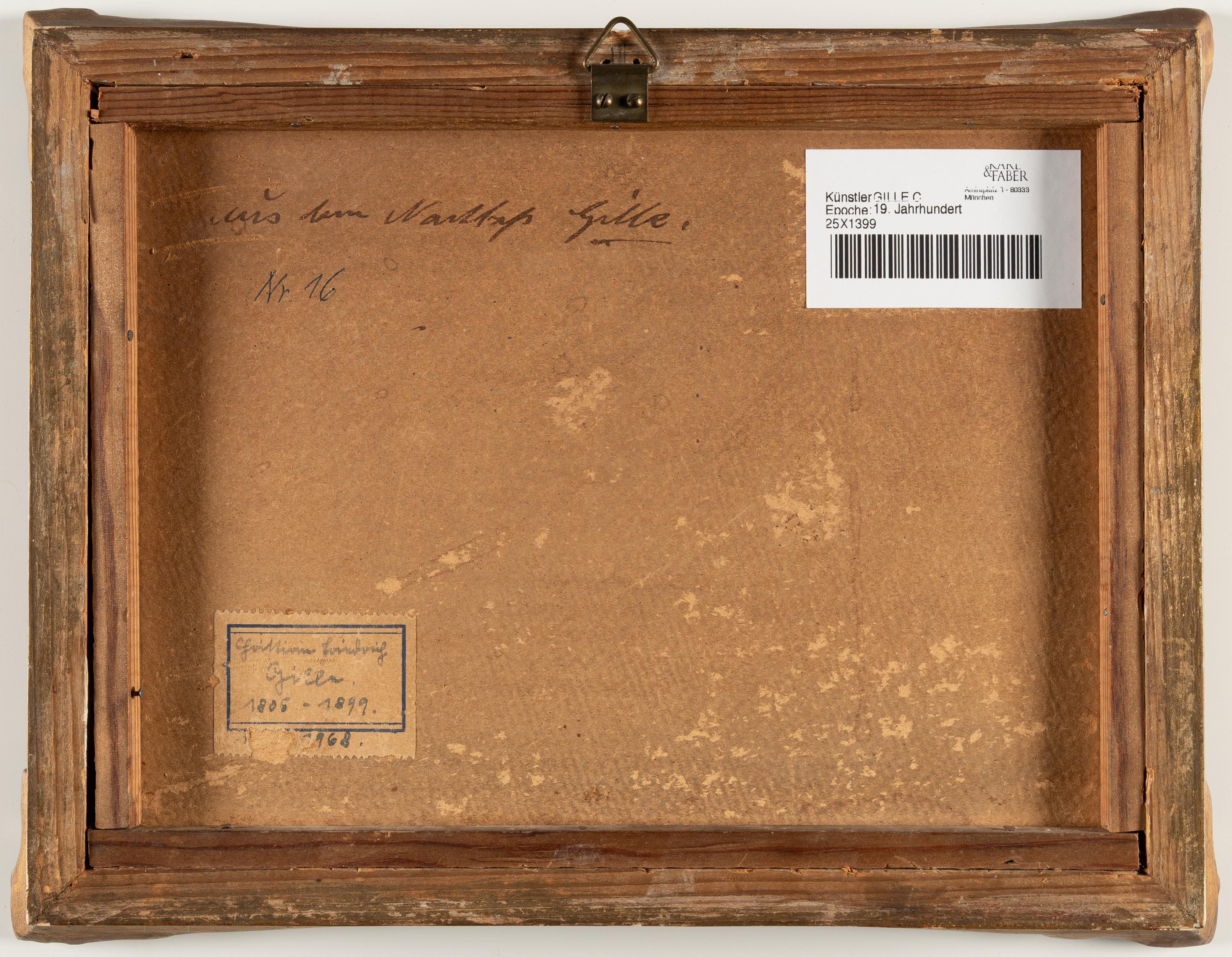 Öl auf Leinwand, aufgezogen auf Karton. (Um 1835/40). 16,6 x 22,7 cm. Verso beschriftet „aus dem Nachlass Gille/Nr. 16“ sowie auf altem Etikett mit dem Namen und den Lebensdaten des Künstlers. Gerahmt.