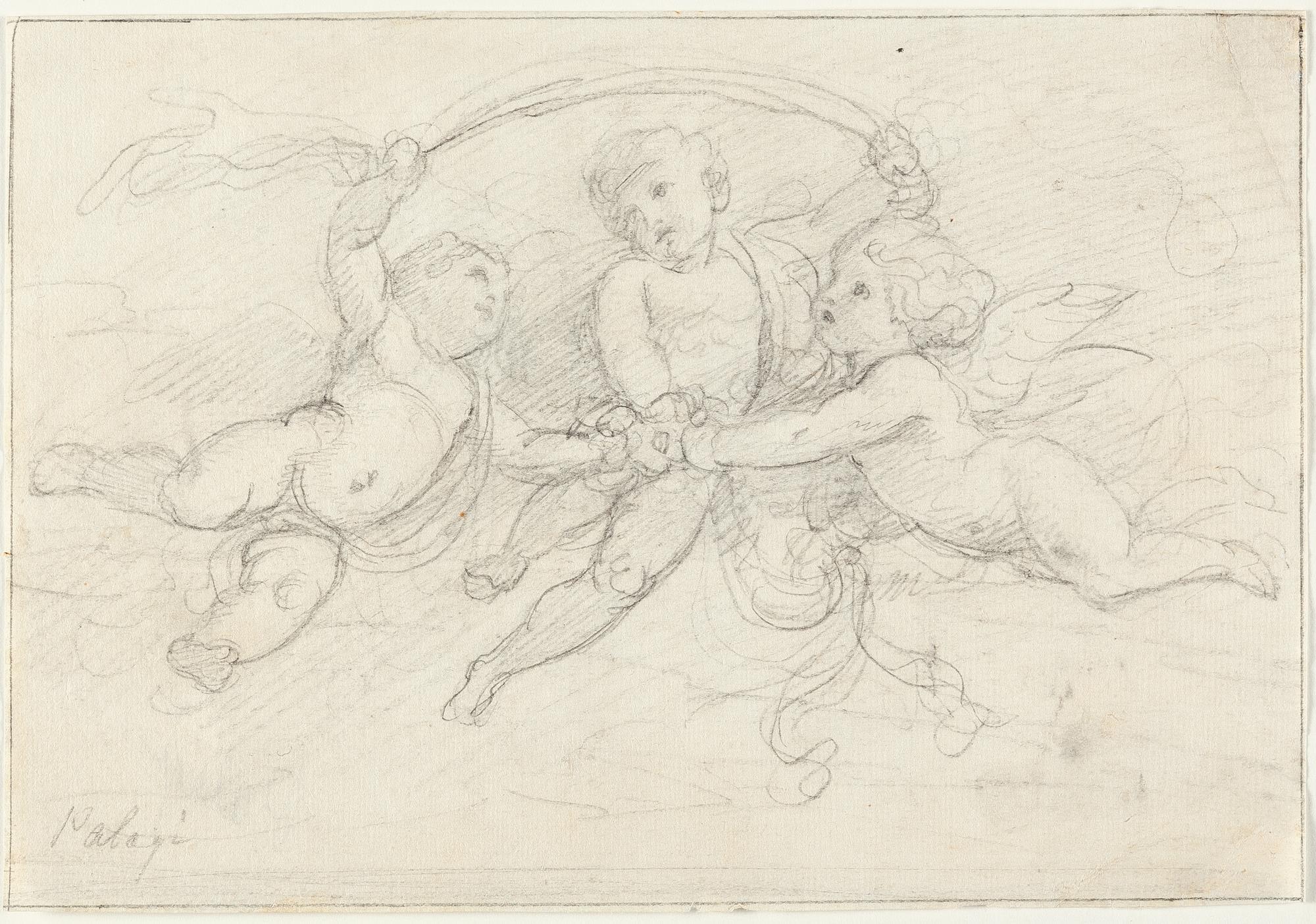 Schwarzer Stift auf Bütten mit Wz. „Bekrönte Kartusche, darunter Buchstaben BT“. (Um 1791). 14,7 x 21,2 cm. Unten links bezeichnet „Palagi“.