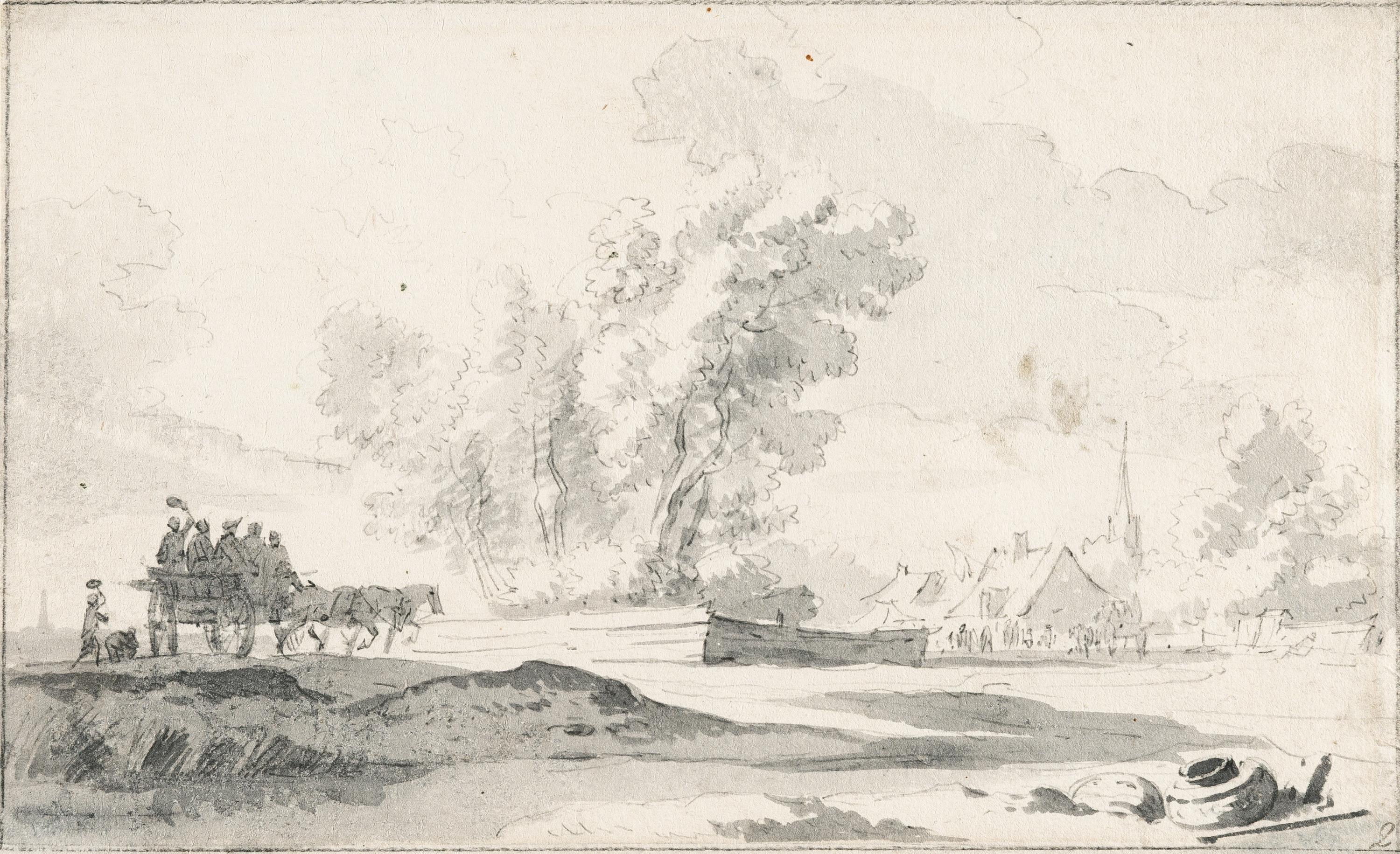 Schwarze Kreide, grau laviert, auf Bütten. (Um 1645). 15 x 24,5 cm. Unten rechts paginiert „2“.