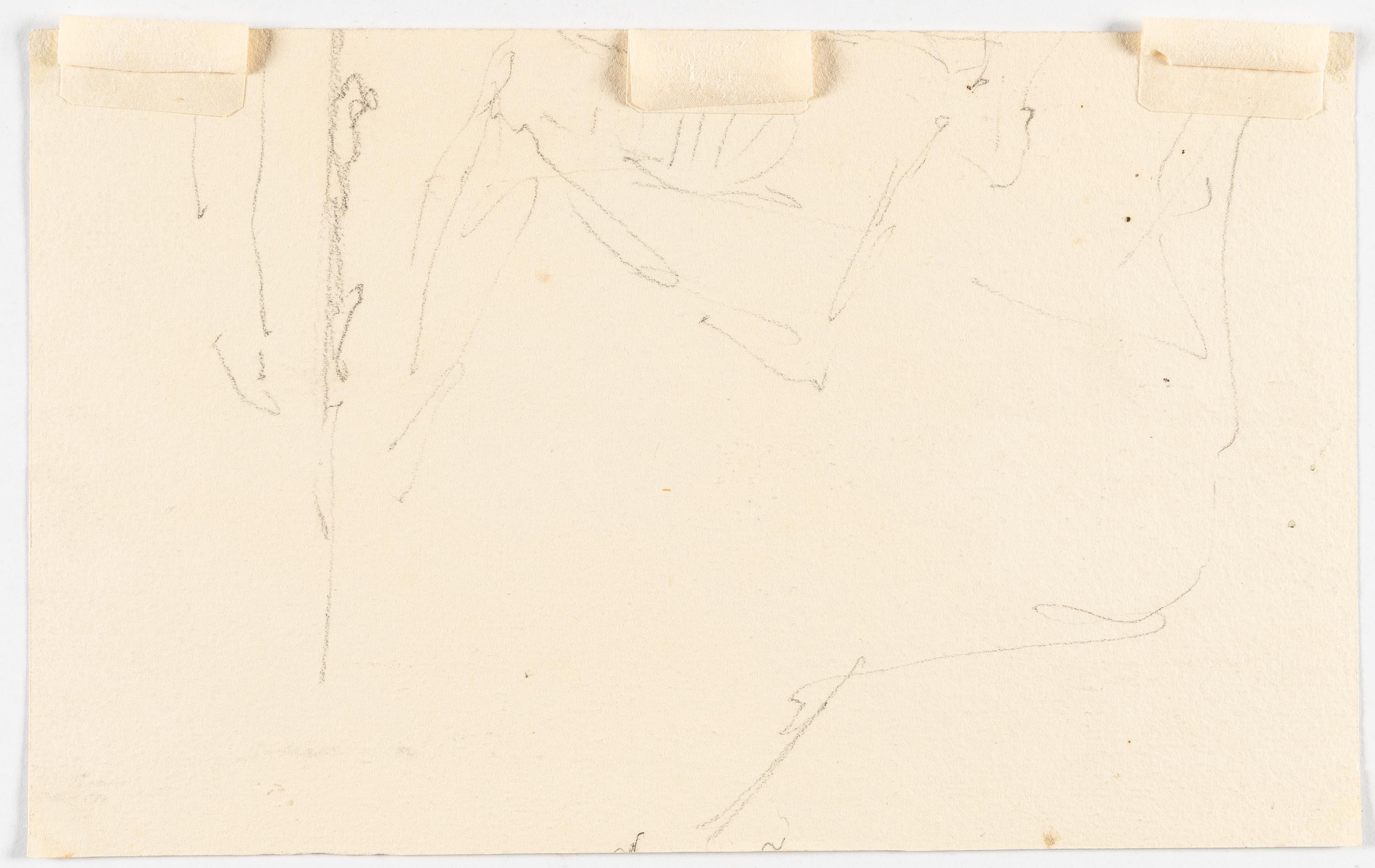 Pinsel in Braun und Schwarz, laviert, auf Velin. 14,3 x 23,4 cm. Unten rechts in Bleistift signiert. Verso flüchtige Bleistiftskizze.