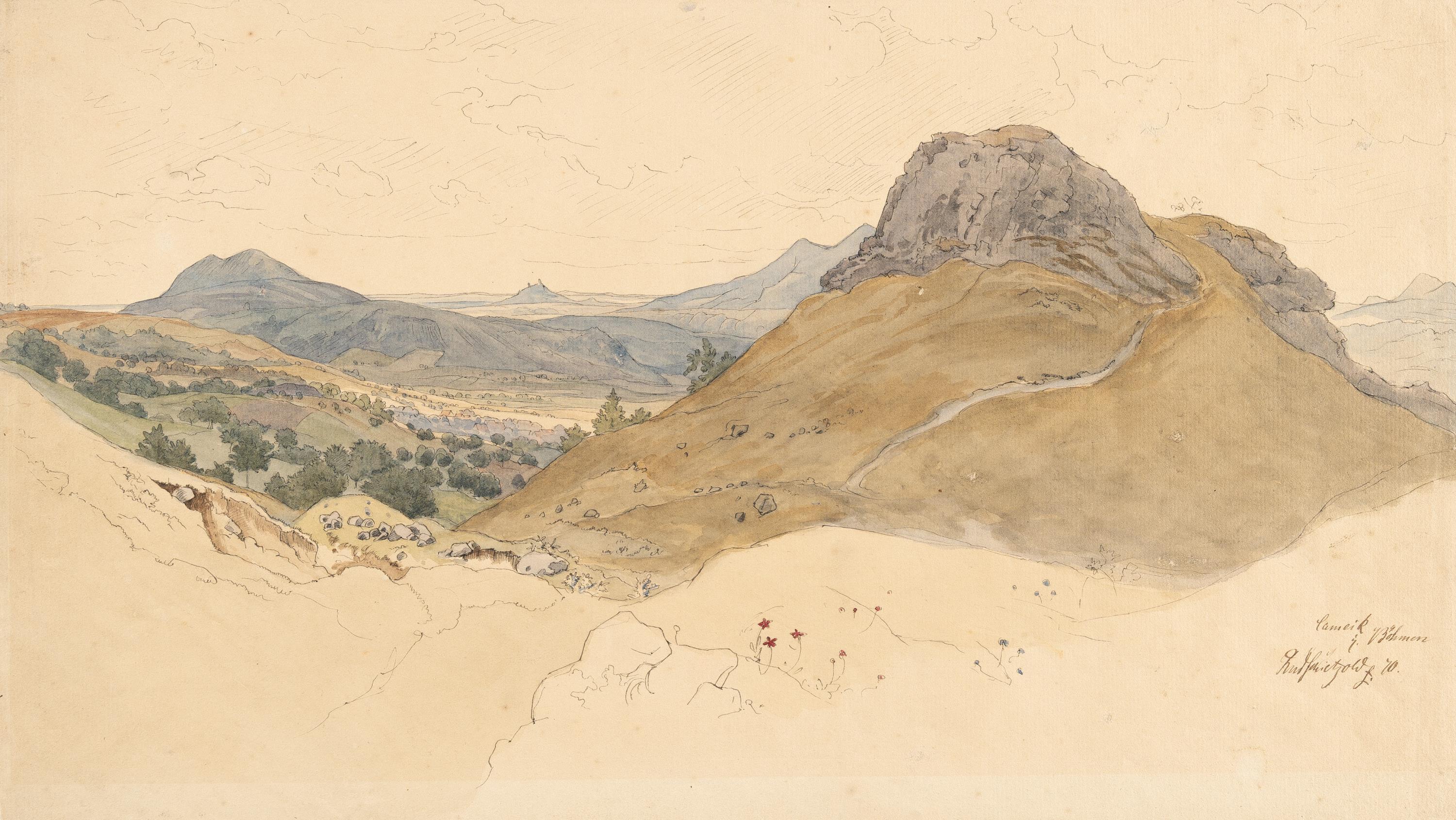 Feder in Schwarz, aquarelliert, auf Bütten mit Wz. „Fortuna“. (18)70. 25,5 x 44,2 cm (Blattgröße). Unten rechts ortsbezeichnet „Cameik (Kamnitz) i. Böhmen“, darunter signiert und datiert.