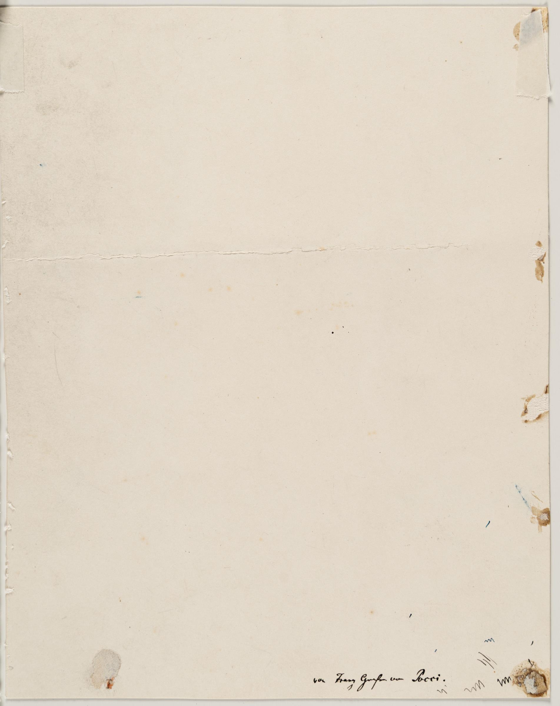 Feder in Blau und Braun auf Karton. (Um 1845). 22,2 x 17,5 cm. Oben links in brauner Feder betitelt. Verso von fremder Hand bezeichnet „von Franz Graf von Pocci“. Die einzelnen Figuren benannt.