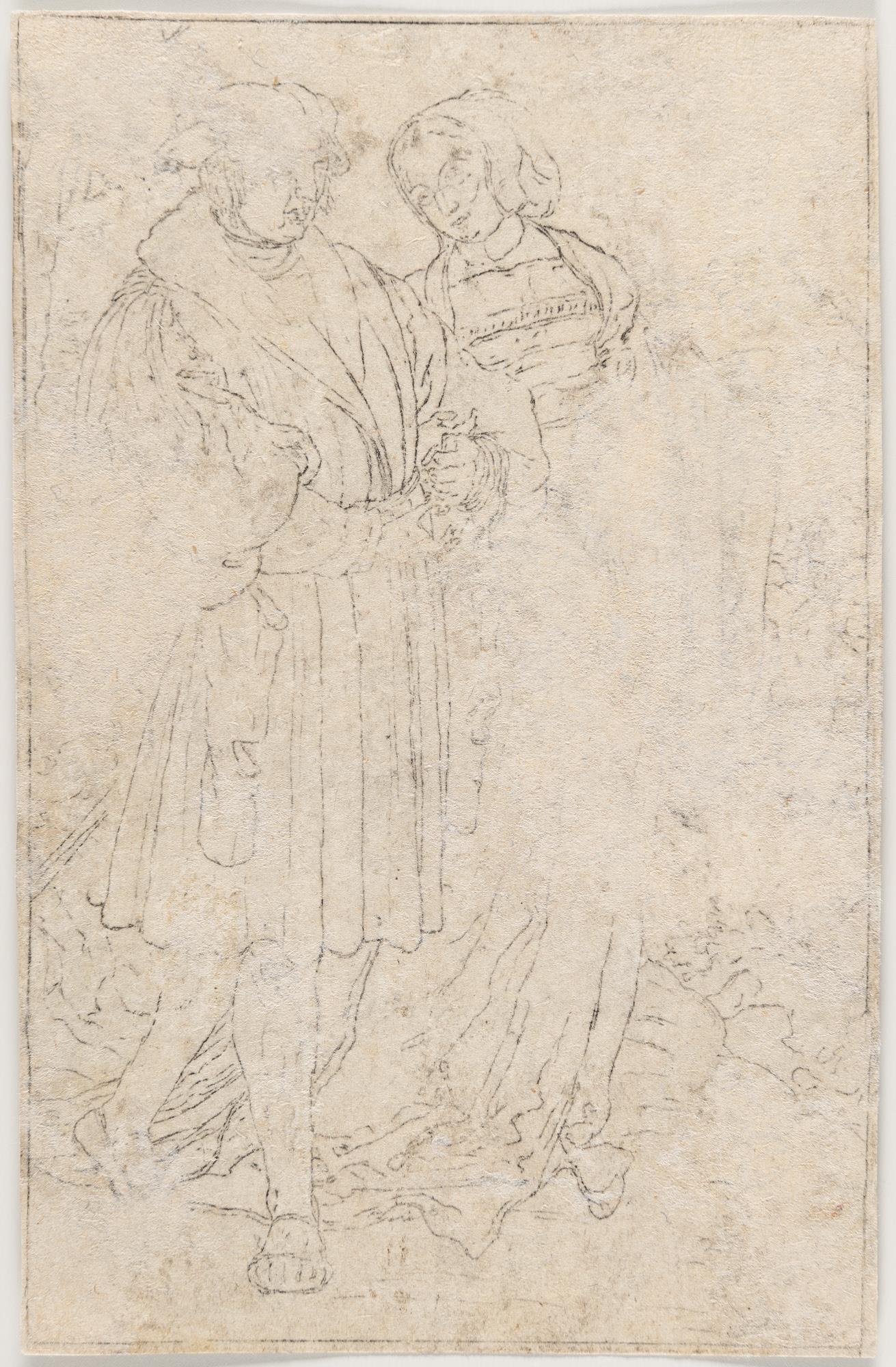 Excellent, richly inked lifetime impression, before the scratches at the upper right and with a fine margin around the borderline. – Tiny brown stains. Partially backed on the reverse due to paper defects. The borderline partially redrawn. With a contour drawing on the verso, not showing through to recto. In good condition. Rare!