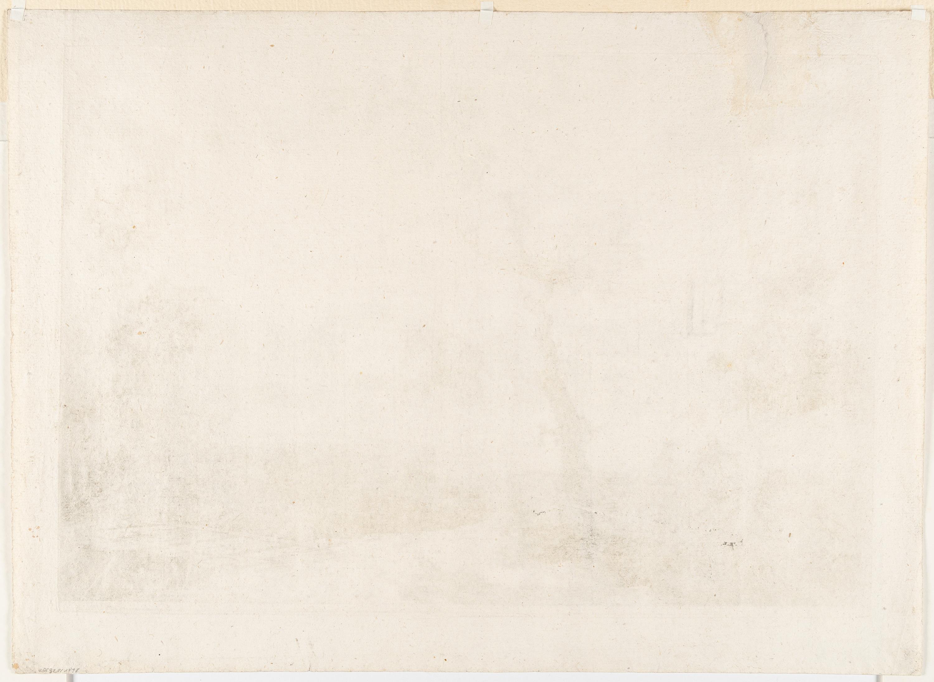 A good impression of the second, final state, with strong contrasts and all the details distinct. Wide margins. – A closed tear on the upper edge. Two small tears on the lower edge. The paper with brown spots. Slight creases in the corners, otherwise in good condition.
