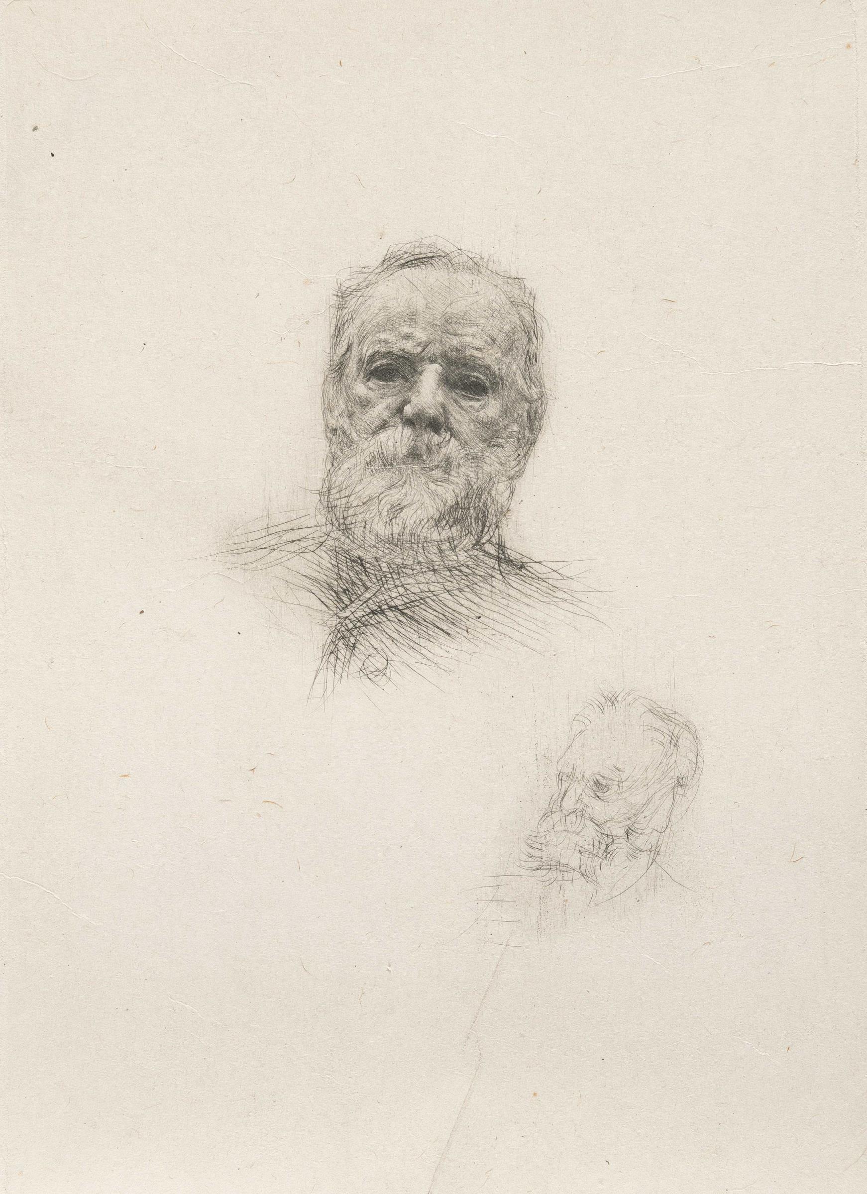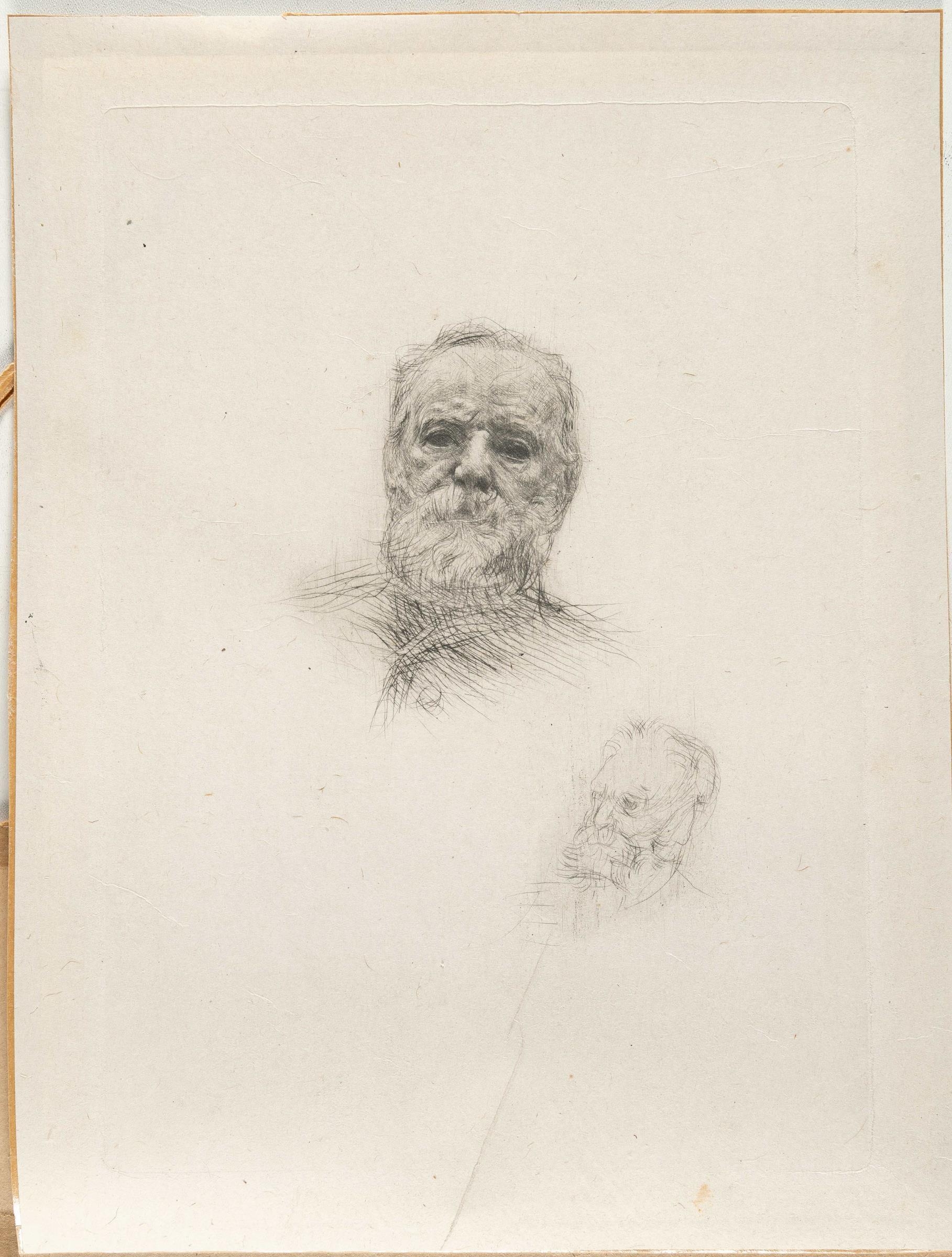 A good impression before the additional text. Wide margins. According to Delteil, the sheet appeared in the Edition de luxe de la Gazette des Beaux-Arts in March 1889. – A few tiny spots. Mounted along the edges into the cut-out of the mount. A crease at the lower edge, otherwise in good condition.