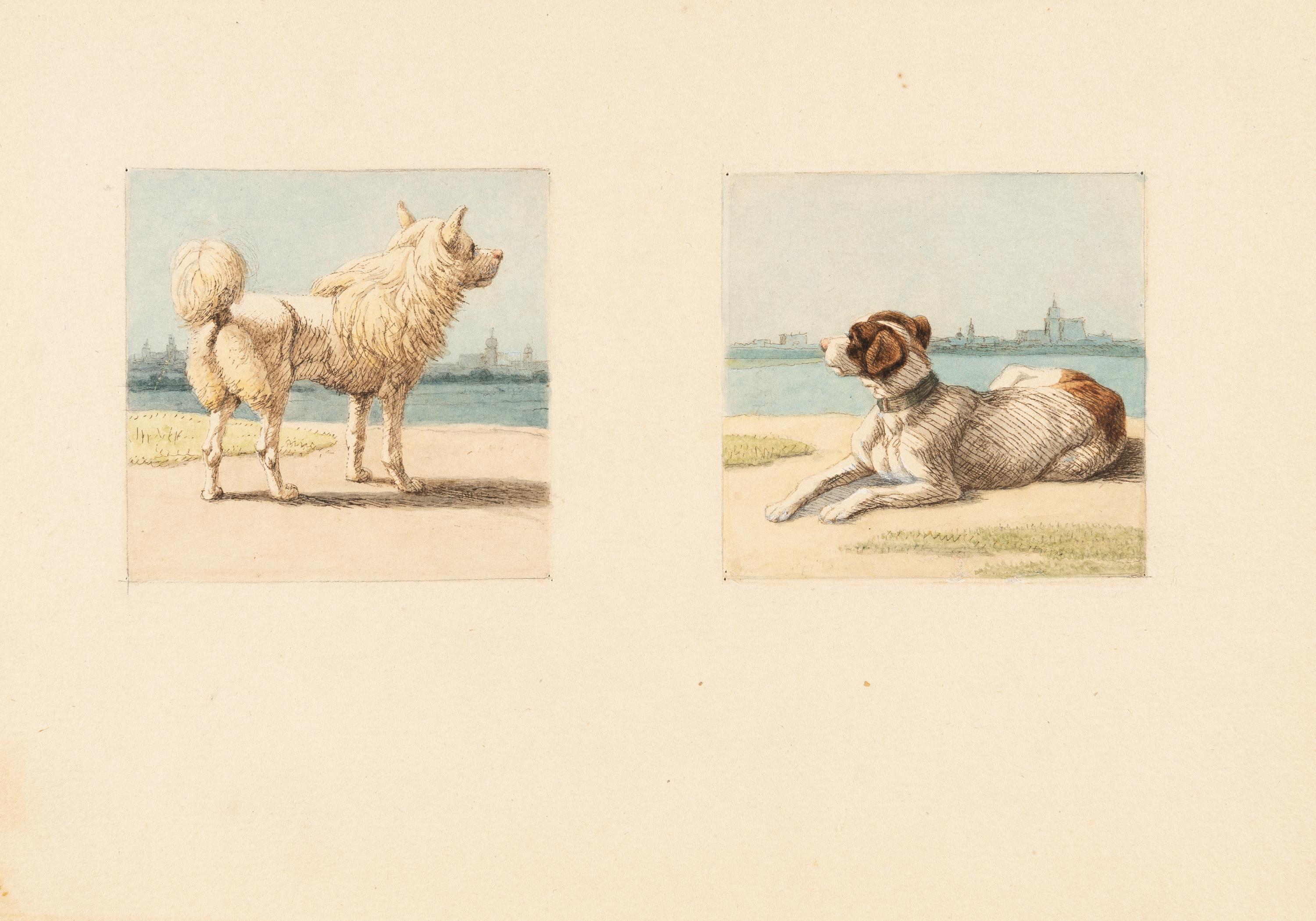 From the series of twelve prints titled 'Die Hunde' (The Dogs). – Slightly time-stained in the cut-out of the mount. Discoloration in the corner areas; with remnants of adhesive strips. Otherwise in good condition.