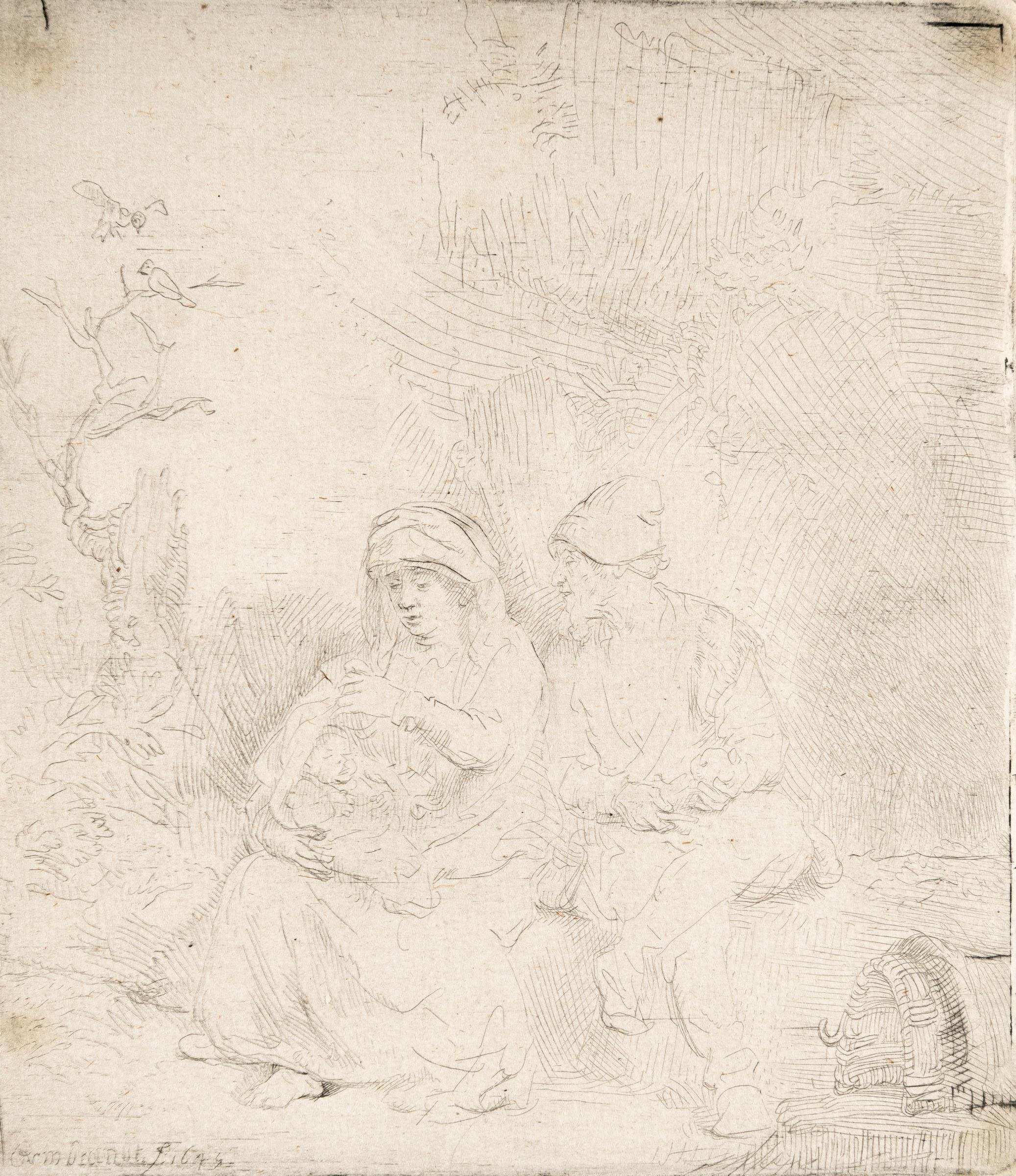 A very fine, early impression of the only state, displaying strong touches of burr and subtle plate tone. Prints of this subject are extremely rare, as the plate was lost at an early stage and no late impressions exist. In Nowell-Usticke, it is marked with 'RRR' for 'extremely rare' and described as 'a very rare lightly etched plate'. With narrow margins. – Paper slightly time-stained with faint foxing visible in the corners. Minor thinning along the side edges; with traces and remnants of former mounting, otherwise in good condition.