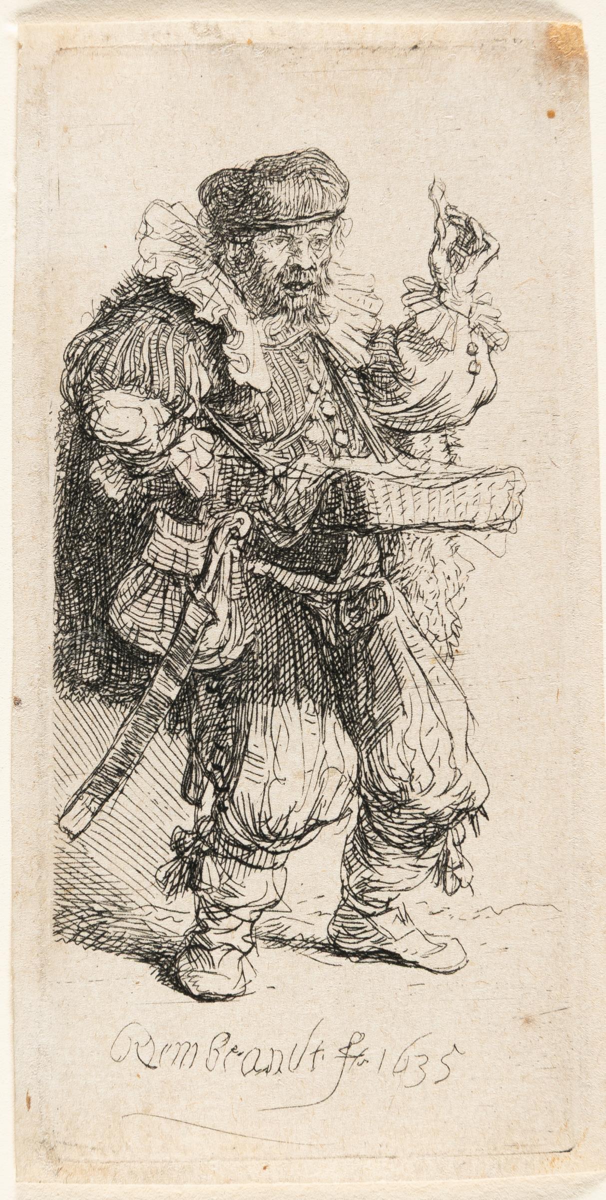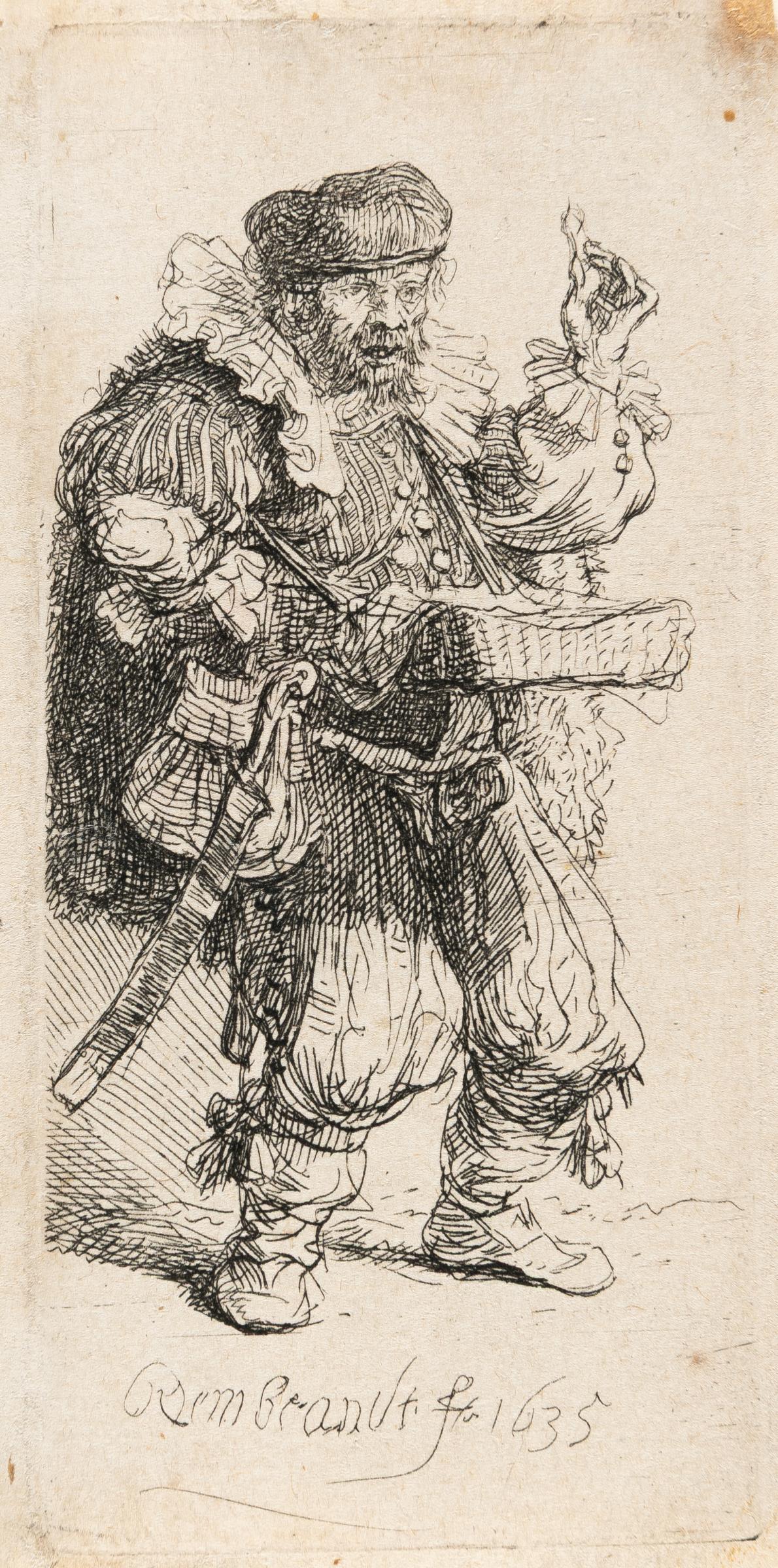 A very fine impression of the only state of this popular print. With a small margin around the platemark. The burlesque sheet depicts a street vendor with dubious remedies, dressed in a fantasy costume. According to Usticke, 'A very scarce, desirable little print (RR-)'. – The upper right corner tip made-up, with tiny brown stains. Otherwise in very good condition.