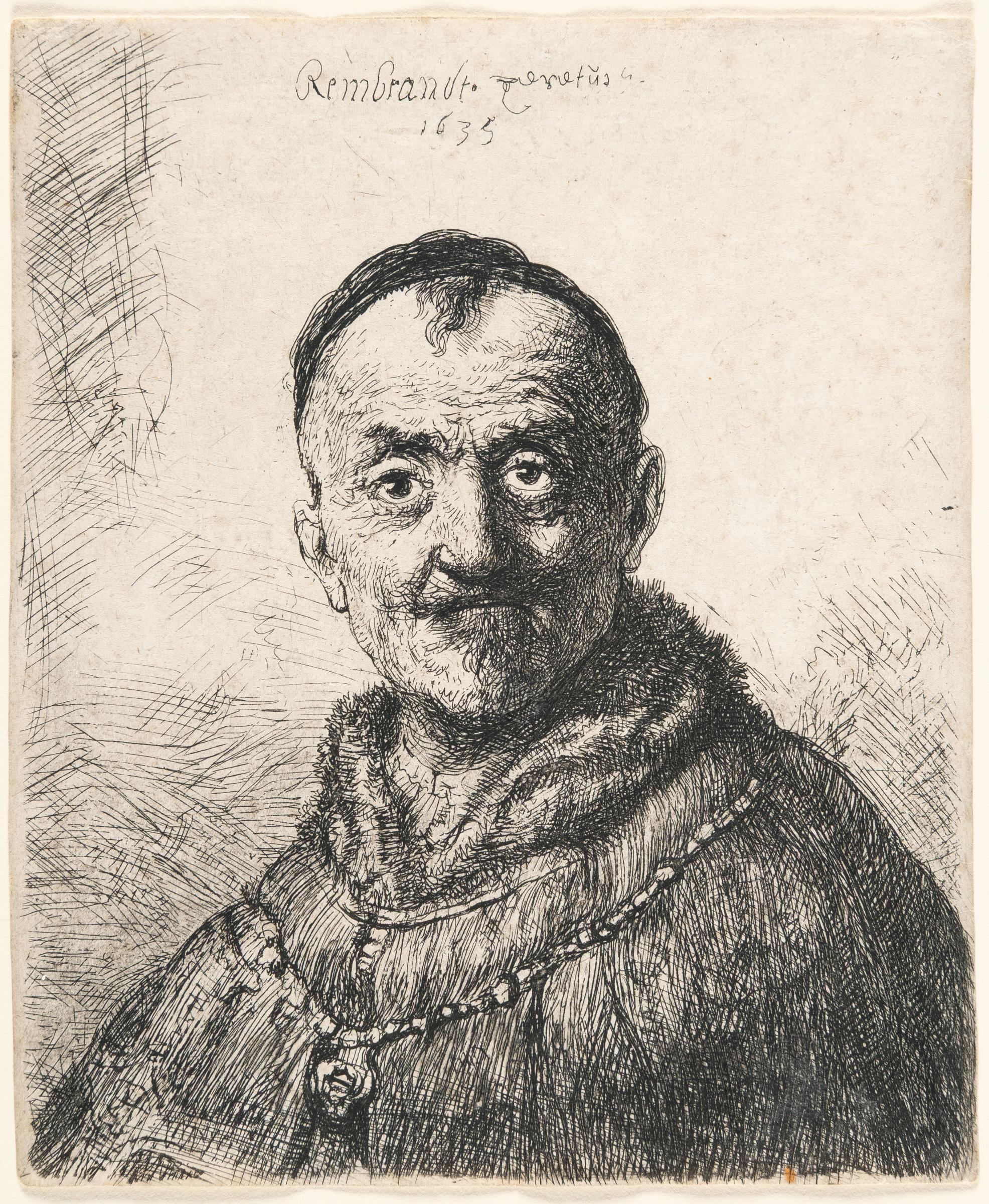 A very fine impression of New Hollstein's second state (of five), printing with strong contrasts, fine vertical wiping scratches and touches of burr in the lower left corner. Before the addition of the landscape in the right-hand background – only one unique copy of the first state exists, in London. Early impressions are rare and are inscribed 'R +' in Nowell-Usticke. Trimmed on the platemark. – Isolated tiny brown spots and remnants of former mounting; otherwise in very good condition.