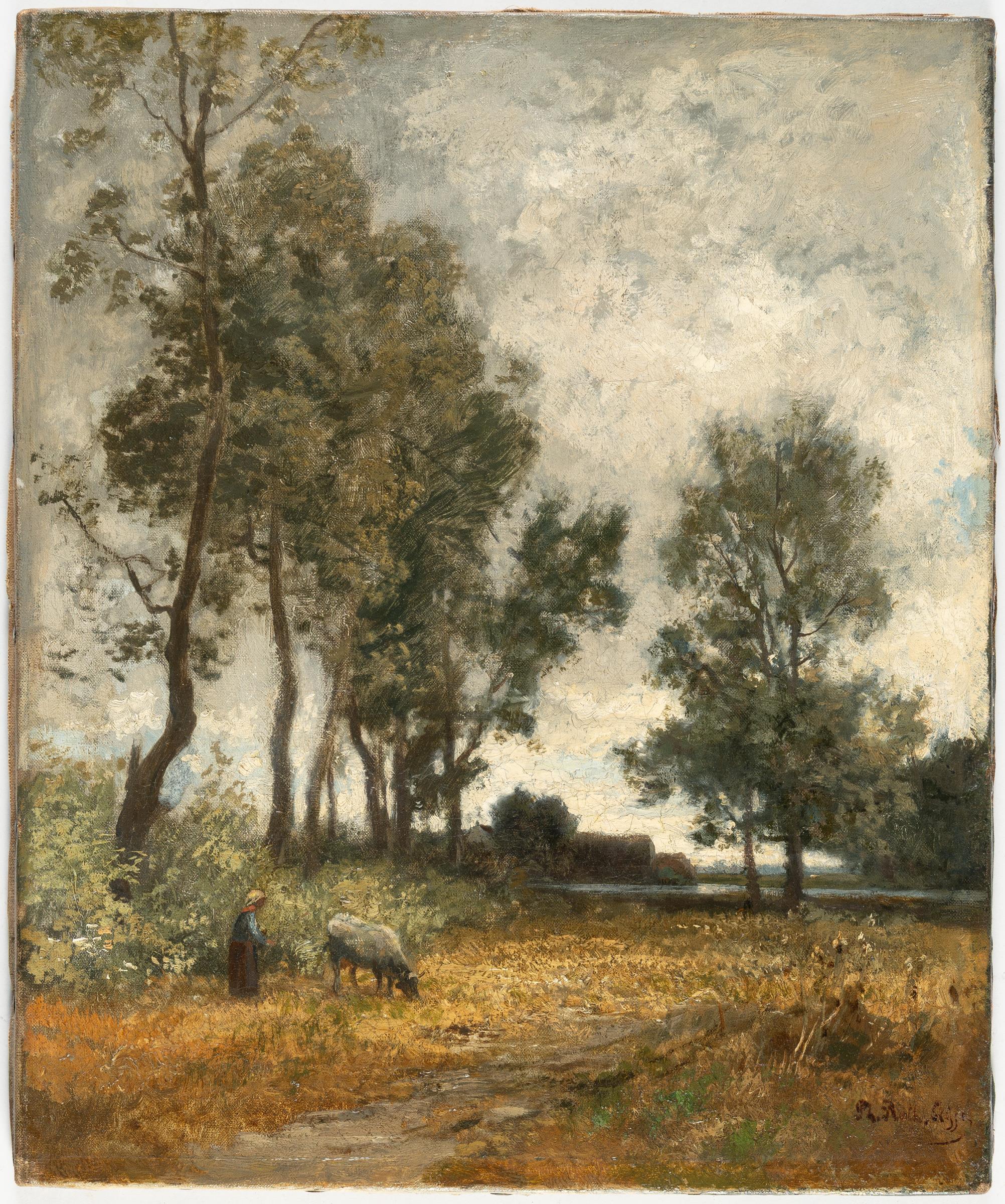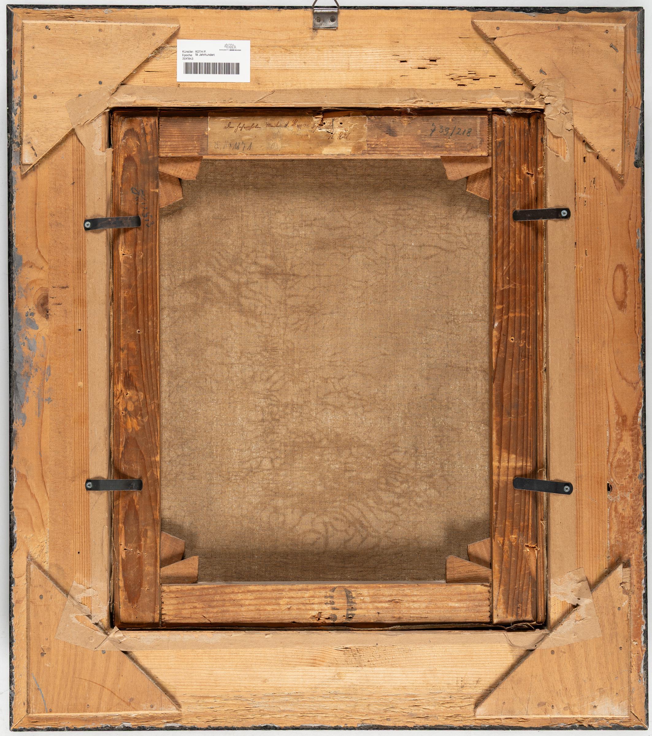 Öl auf Leinwand. (1860er Jahre). 44,3 x 36,7 cm. Signiert unten rechts und bezeichnet „Skizze“. Rückseitig auf dem Keilrahmen auf fragmentiertem Klebeetikett alt beschriftet „dem hochverehrten Meister A. Burger, Ph. Röth“, danach unleserliche Jahreszahl. Gerahmt.