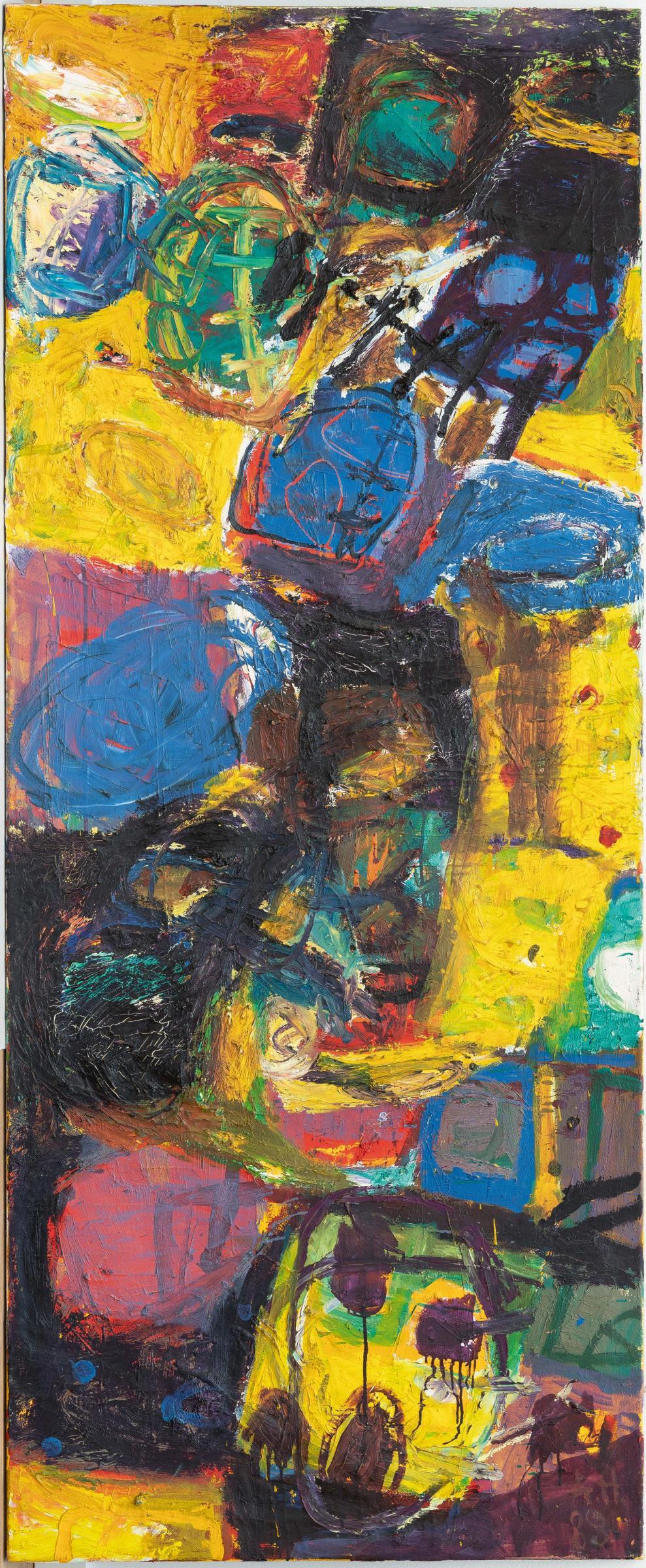 Öl auf Leinwand, (3-teilig). (19)88. Je ca. 220 x 90 cm (Gesamtmaß ca. 220 x 270 cm). Jeweils monogrammiert und datiert unten rechts.