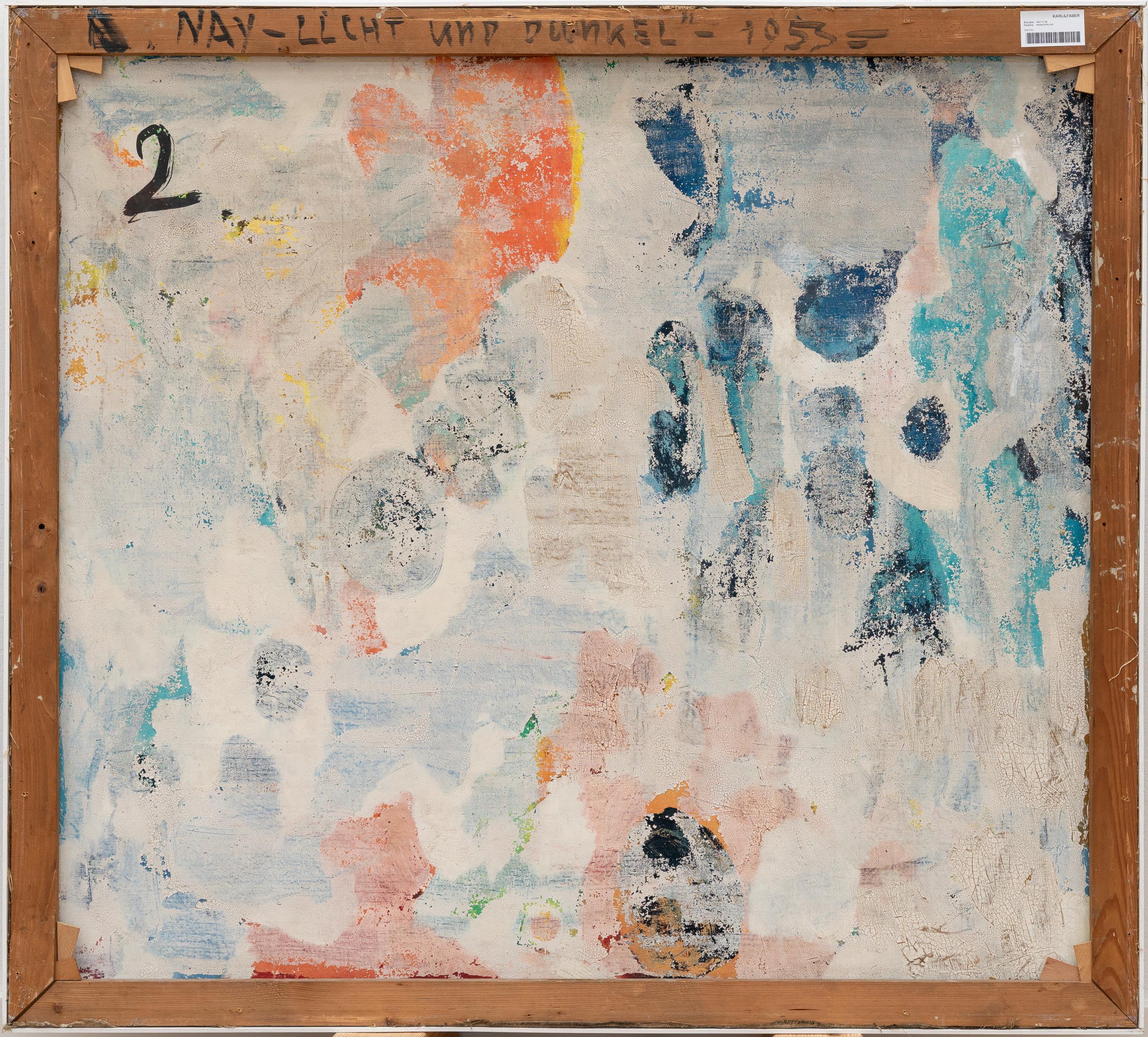 „Licht und Dunkel“ von 1953 ist dabei zu Nays „Rythmischen Bildern“ zu zählen. Hier modelliert der Künstler Farben wie Musik, der Bildsinn entsteht aus der Farbanwendung, Gestik wird im Pinselstrich sichtbar. Beinah synästhetisch ist das Bild hörbar: Es ergeben sich Harmonien und Sprünge, dann zerreißt eine Dissonanz die Fläche. Stakkato folgt auf Piano folgt auf Fortissimo …