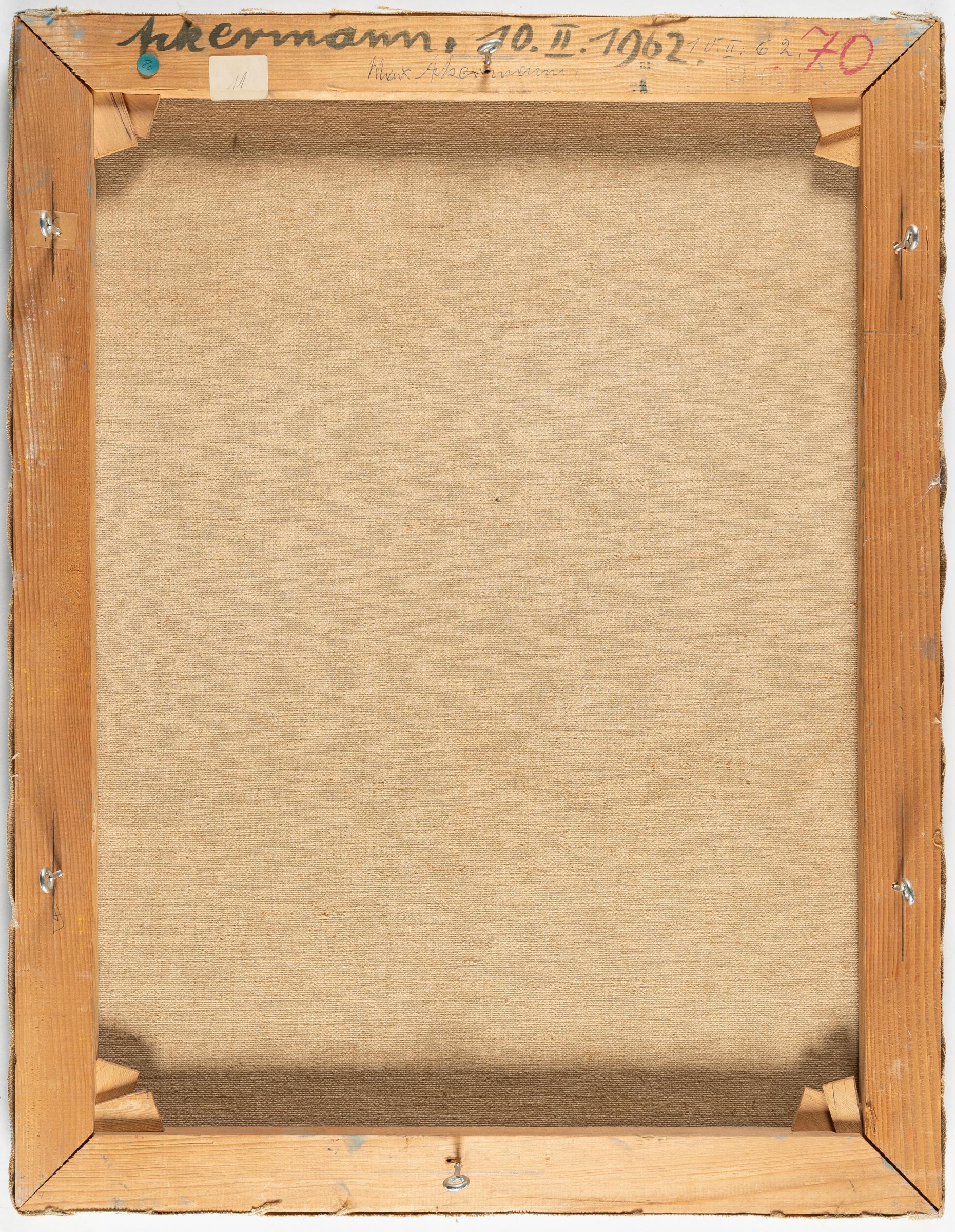 Öl auf Leinwand. 1962. Ca. 65 x 50,5 cm. Signiert und datiert unten links, verso auf dem Keilrahmen nochmals zweifach signiert sowie betitelt „10.II.1962“.