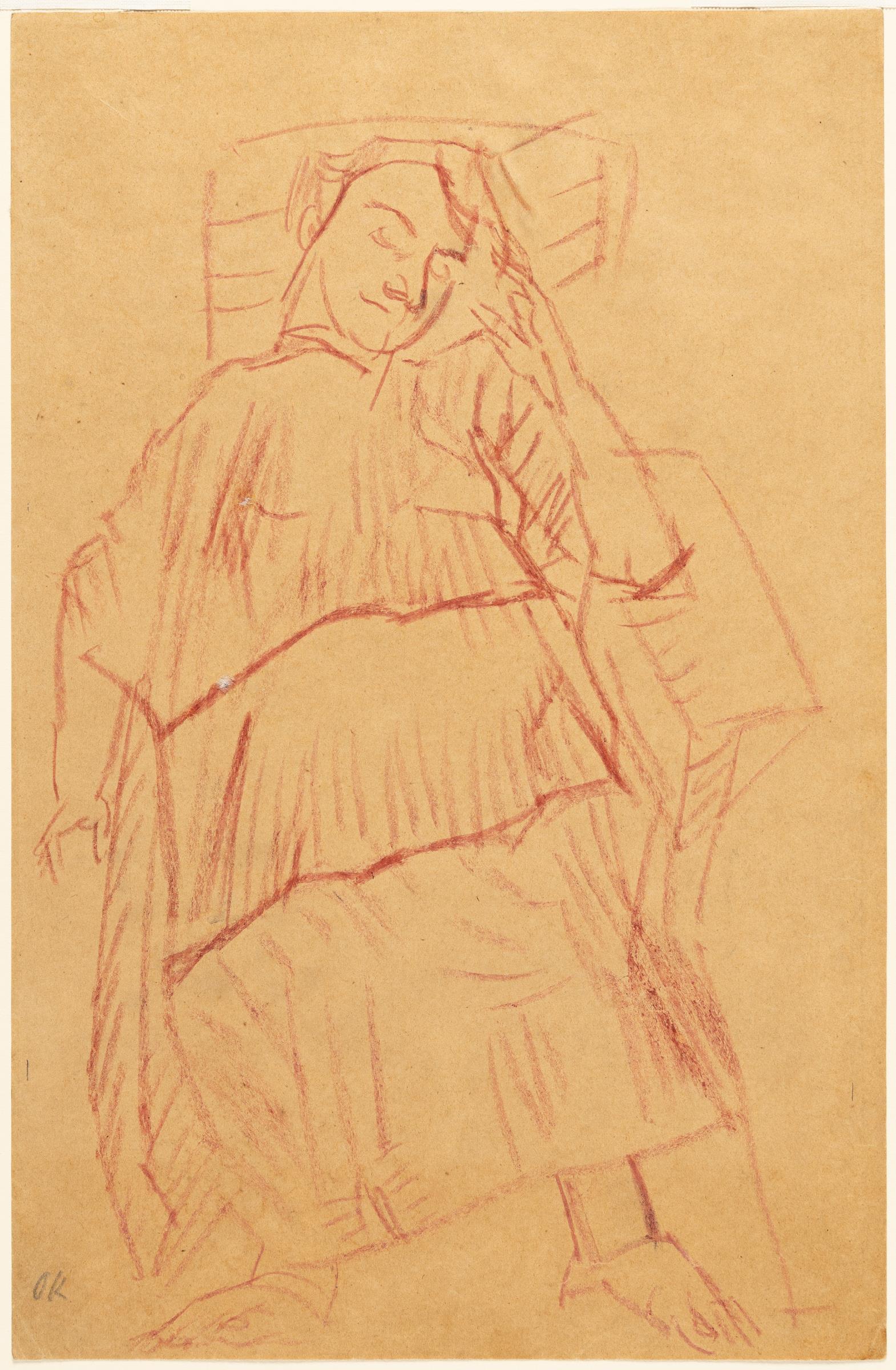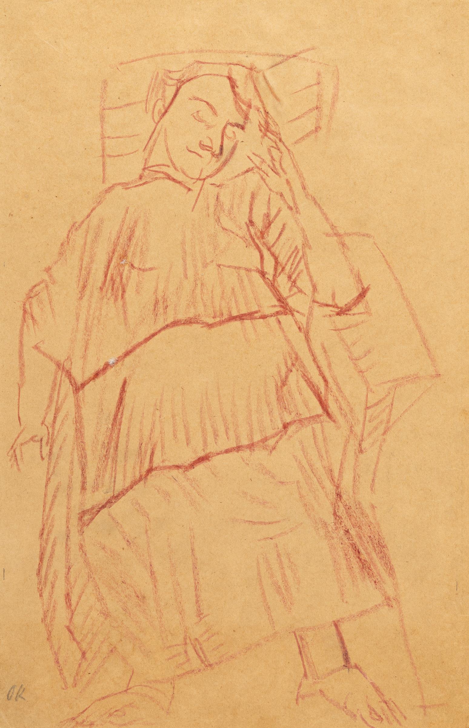 Rote Kreide auf bräunlichem Velin. (1913). Ca. 34,5 x 22,5 cm. Monogrammiert unten links.