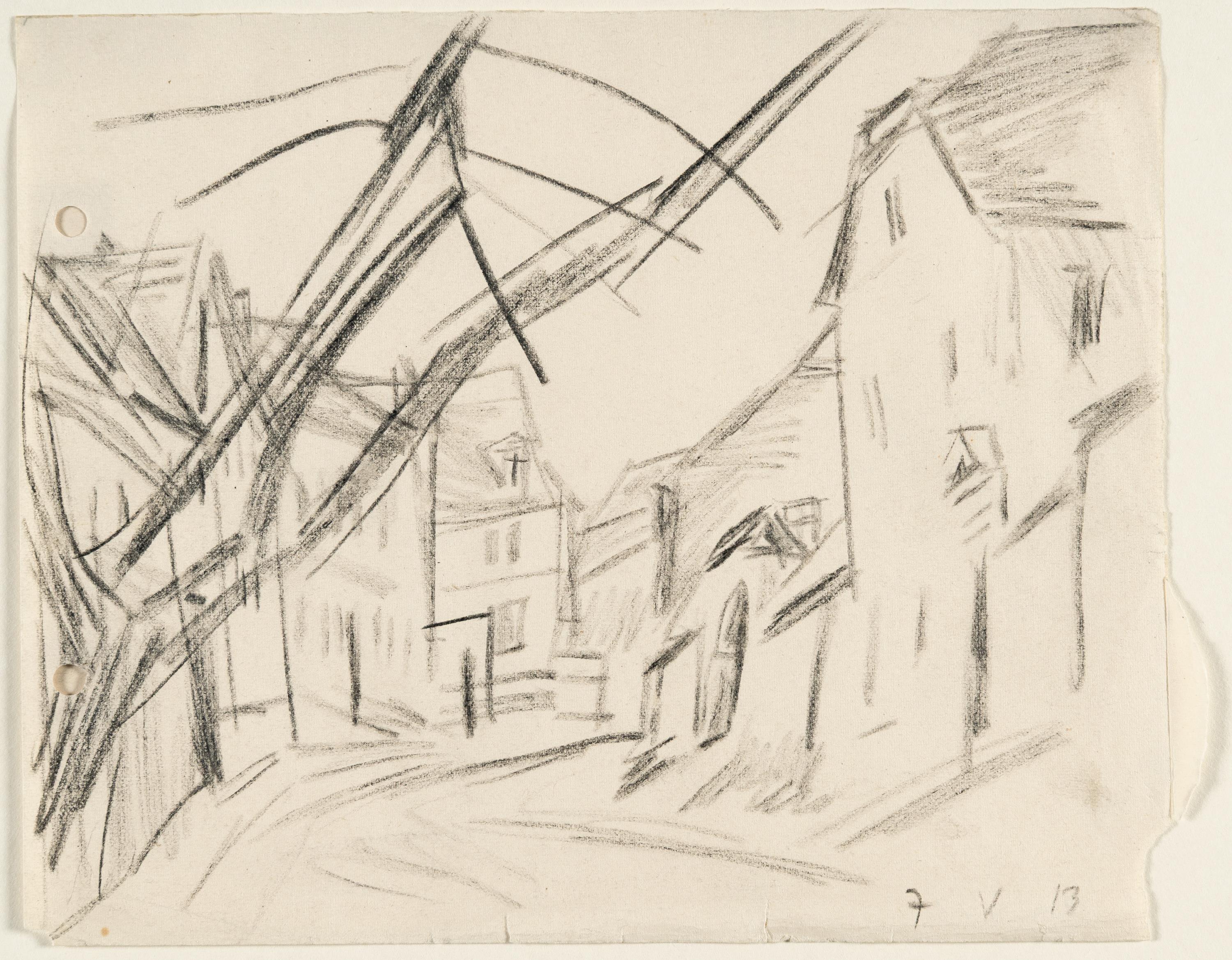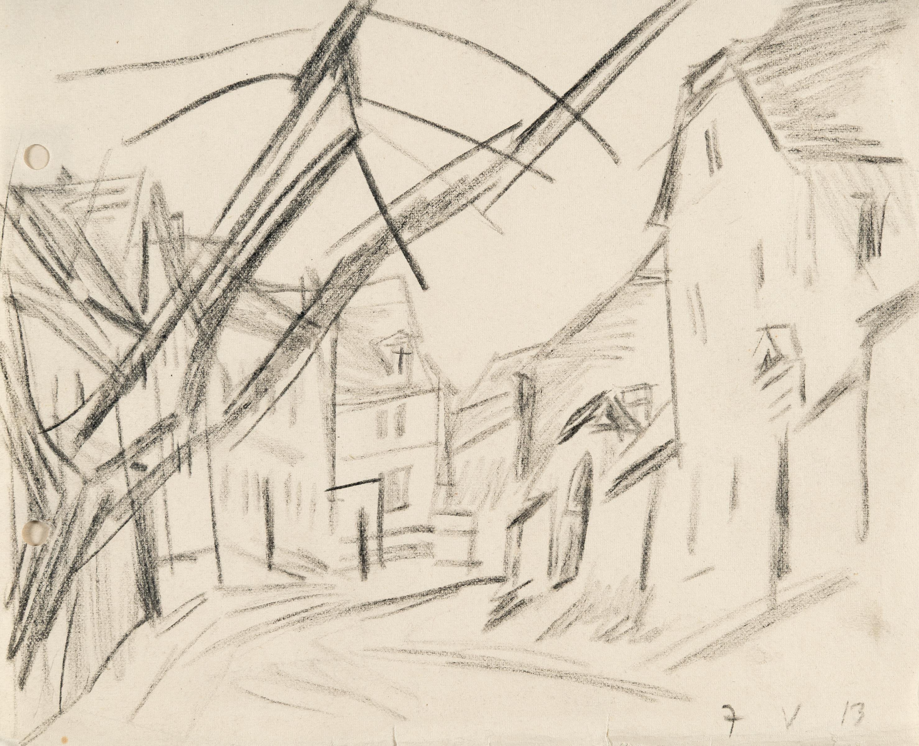 Buntstift auf feinem, chamoisfarbenem Papier. (19)13. Ca. 16 x 20 cm. Datiert unten rechts „7 V 13“.