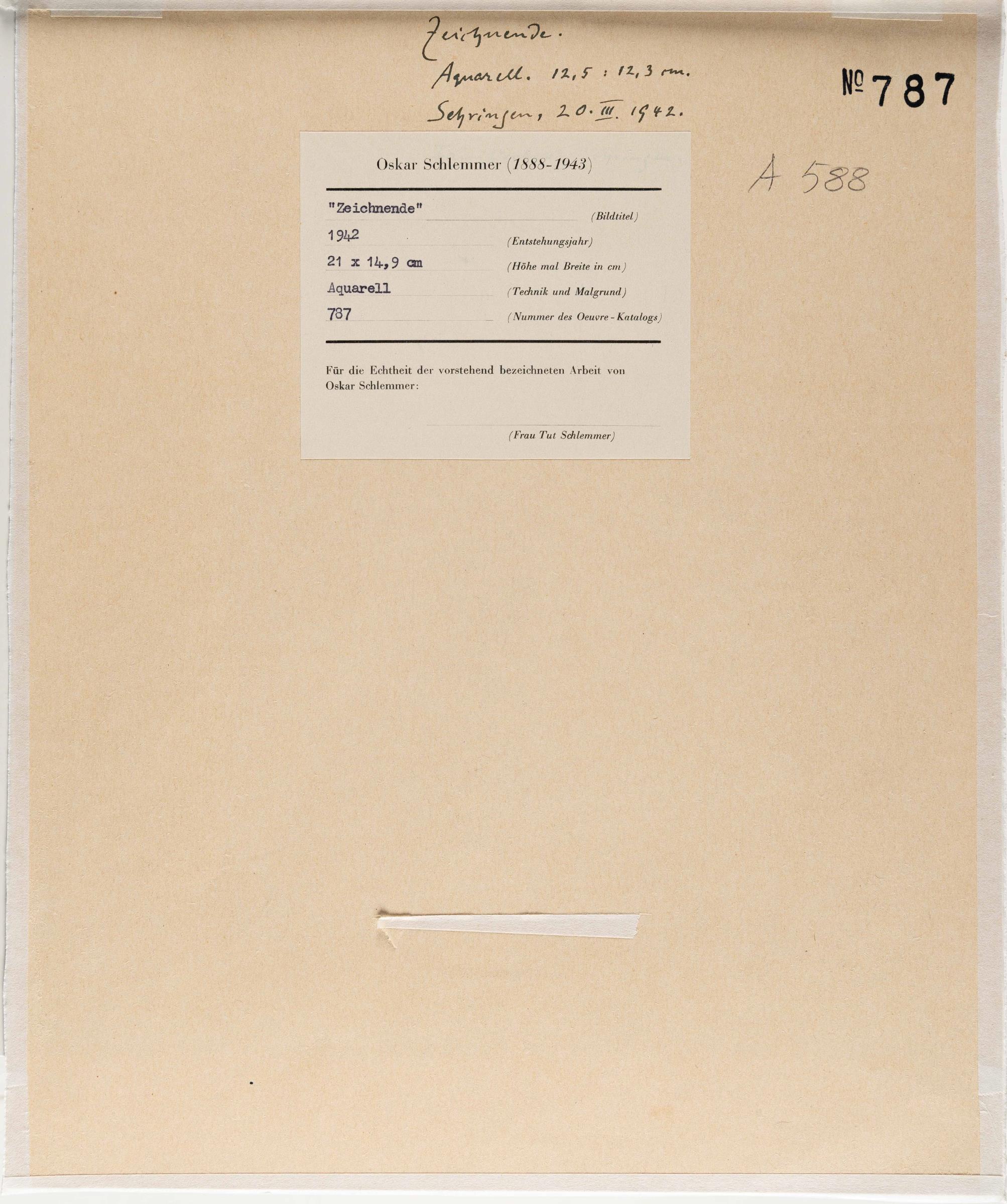Verso auf der Unterlage handschriftlich bezeichnet, mit der Maur-Nr. „A 588“ und der gestempelten Hildebrandt „No. 787“ sowie typografischem Etikett von Tut Schlemmer.