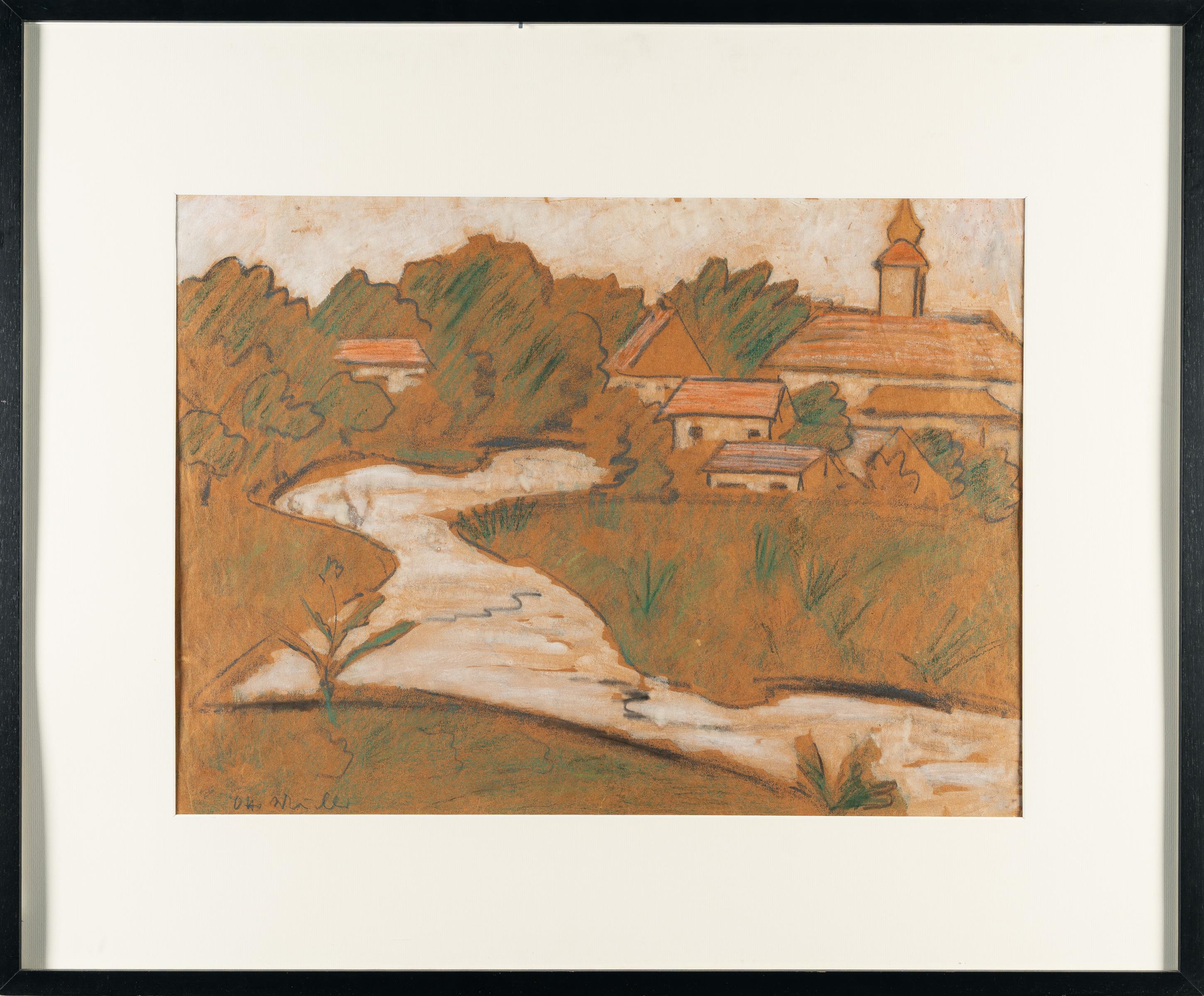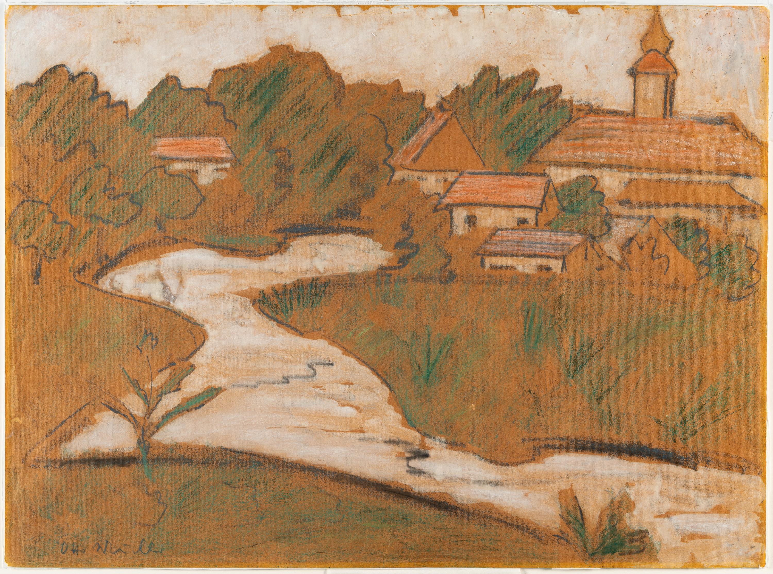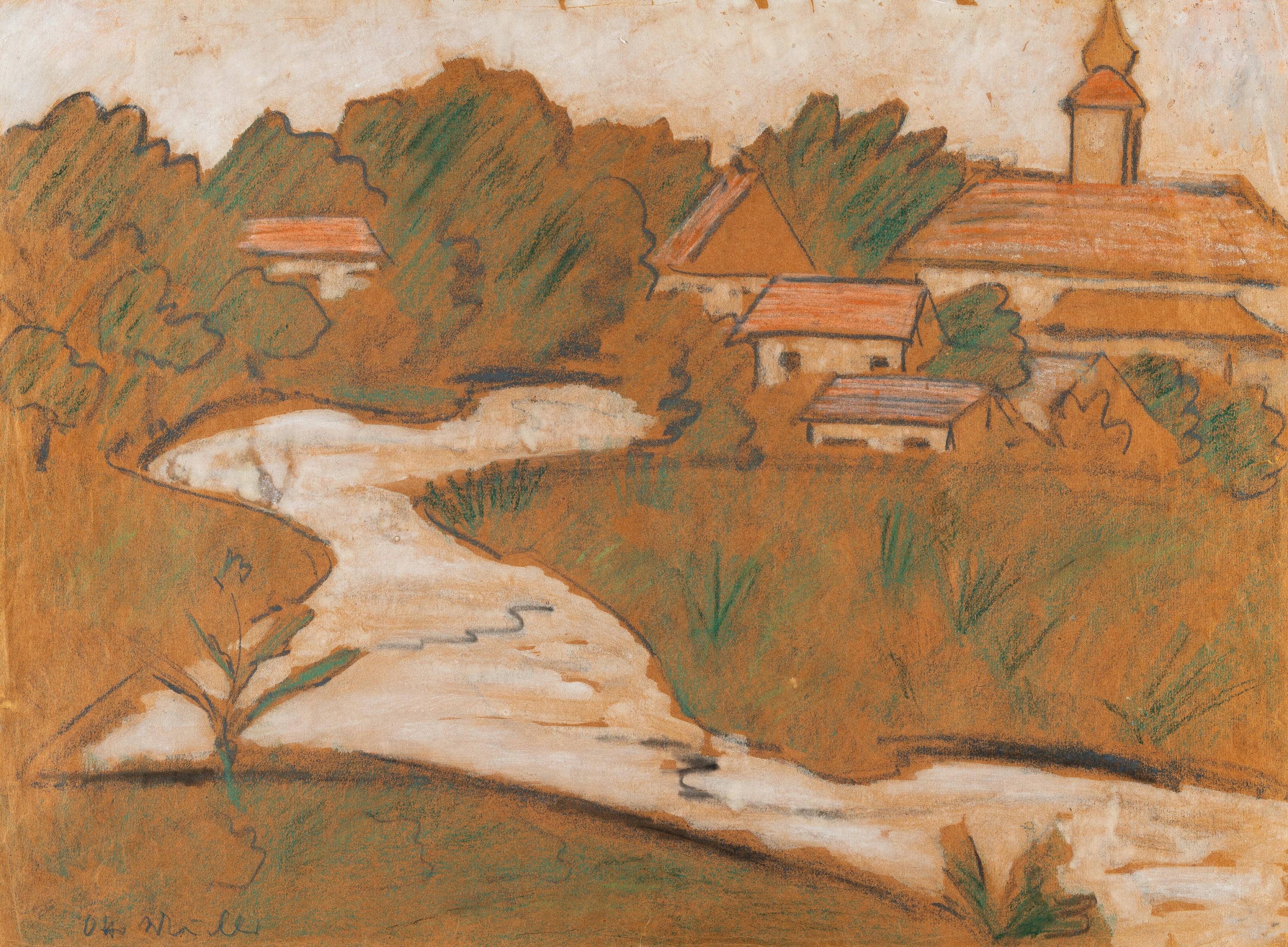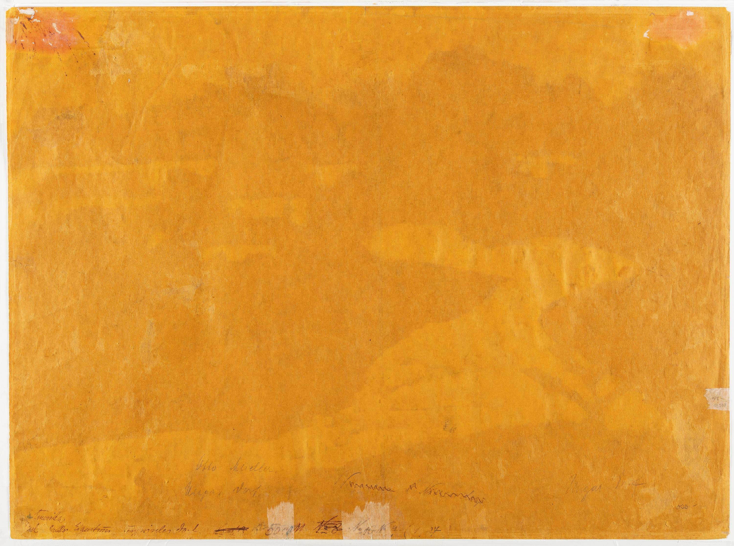 Farbige Kreide und Gouache auf gelbem Papier. (Ca. 1929). Ca. 50 x 68 cm. Signiert unten links.
