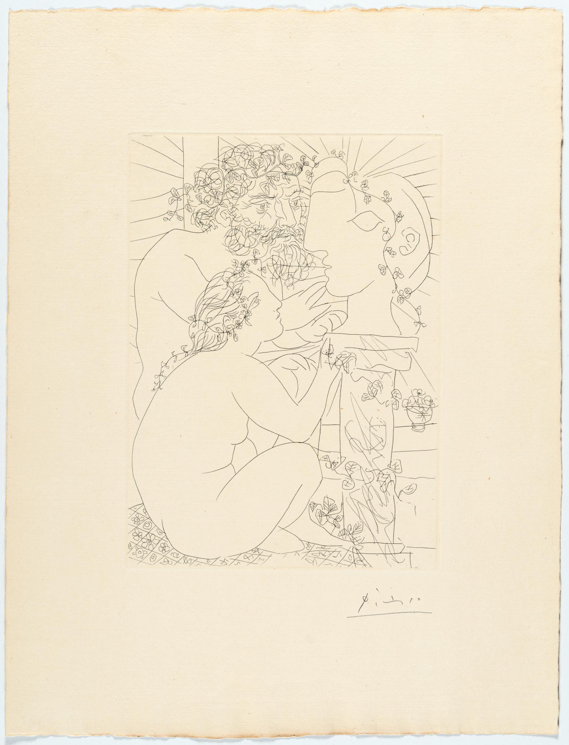 Radierung auf chamoisfarbenem Bütten von Montval mit Wz. „Picasso“. (1933). Ca. 26,5 x 19 cm (Blattgröße ca. 44,5 x 34 cm). Eines von 250 Exemplaren auf diesem Papier. Signiert unten rechts.