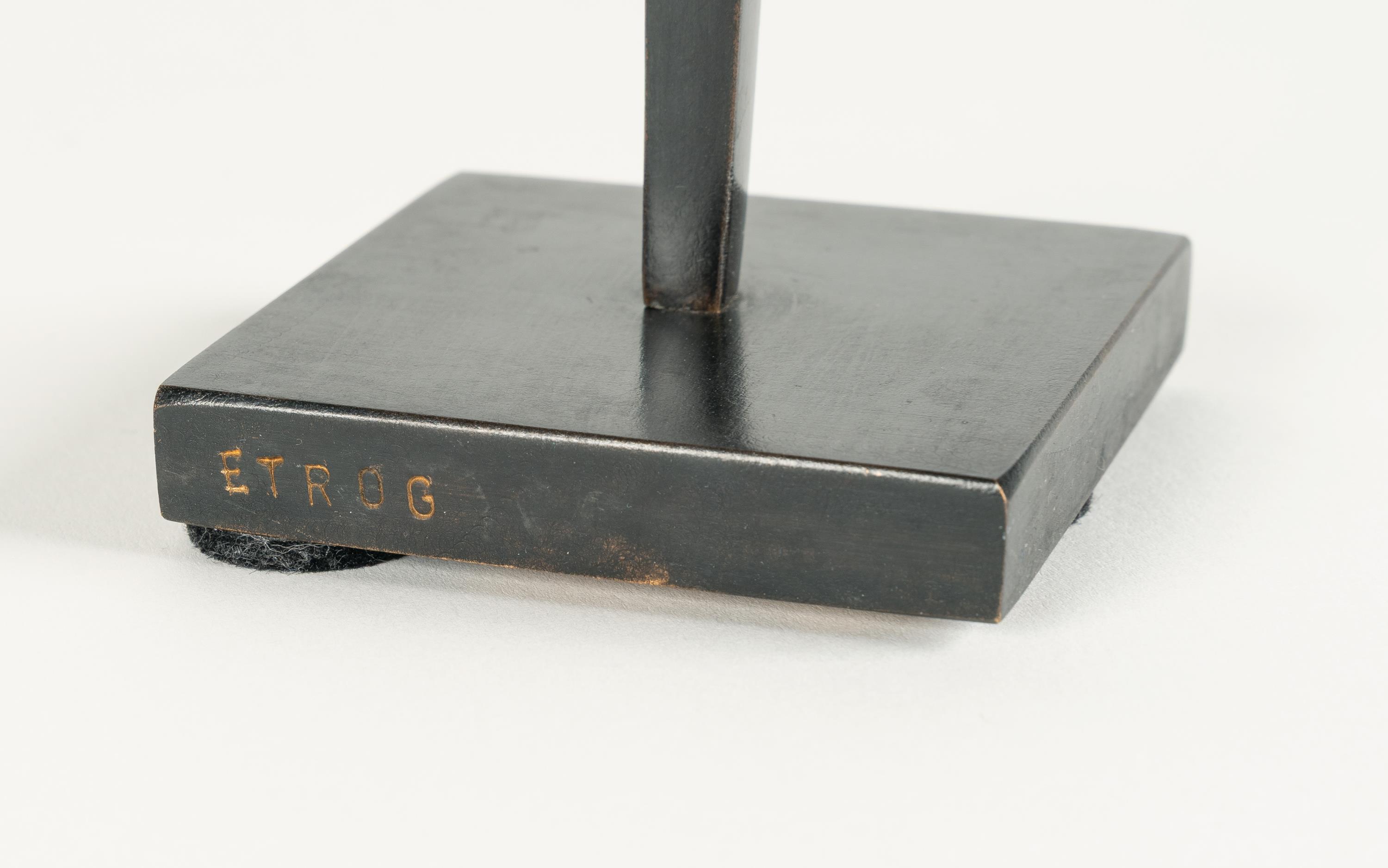 Etrog, 1933 in Rumänien geboren, später in Israel und Kanada tätig, zählt zu den bedeutendsten Bildhauern der zweiten Hälfte des 20. Jahrhunderts. Seine Bronzeskulpturen zeichnen sich durch eine formale Mischung von organischen und mechanischen Elementen – etwa Schrauben, Gelenken oder Scharnieren – aus, durch die Körperlichkeit und Technik gleichsam verhandelt werden.
