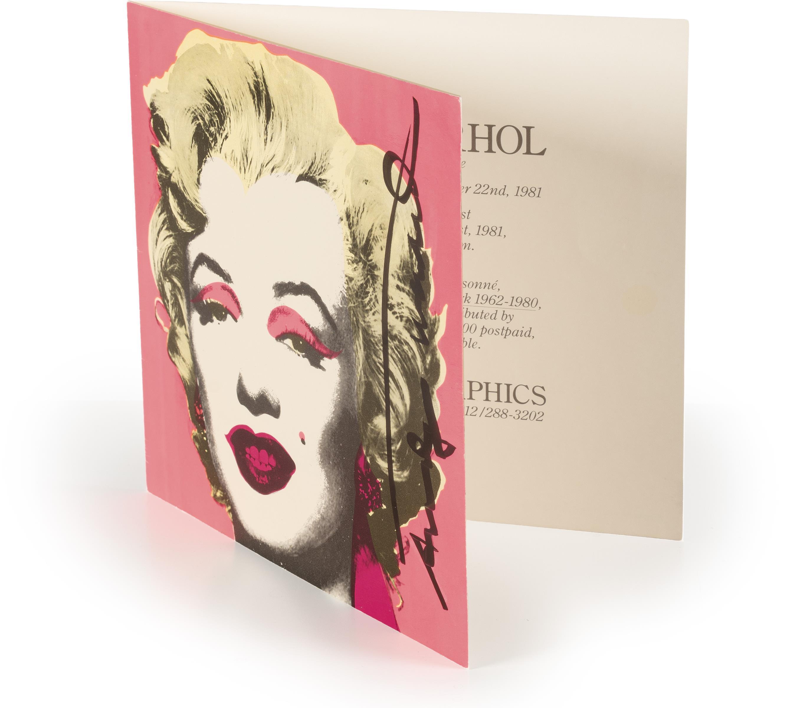 Einladungskarte zur Austellung „Andy Warhol. A Print Retrospektive“, die vom 21.11.-22.12.1981 von Castelli Graphics, New York, ausgerichtet wurde. Gedruckt von Colour Editions, Inc. Motiv nach der farbigen Serigrafie „Marilyn“ aus dem Jahr 1967.