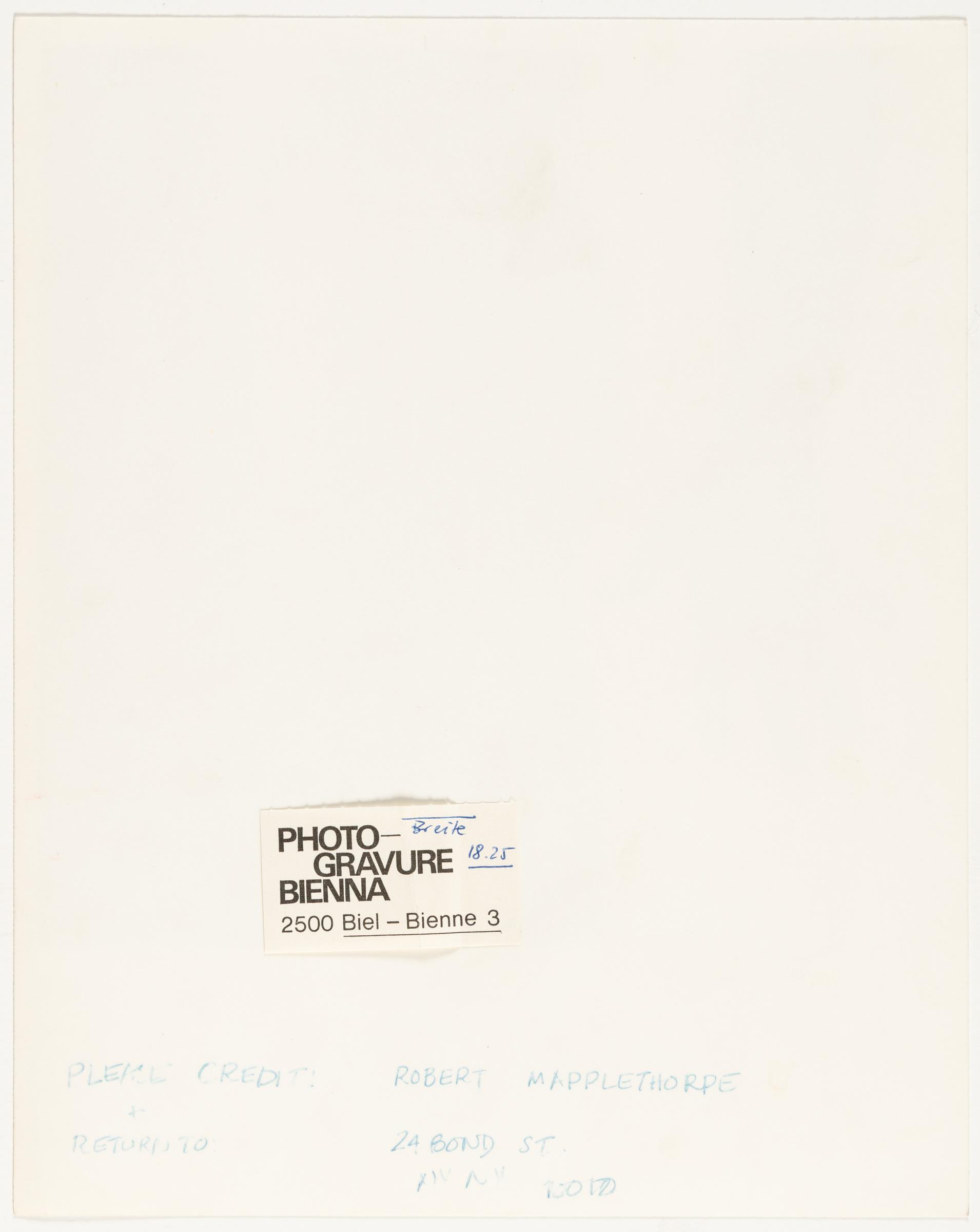 Silbergelatineabzug auf Karton. (1981). Ca. 19 x 19 cm (Blattgröße ca. 25,5 x 20,5 cm). Ein Exemplar außerhalb der Auflage.