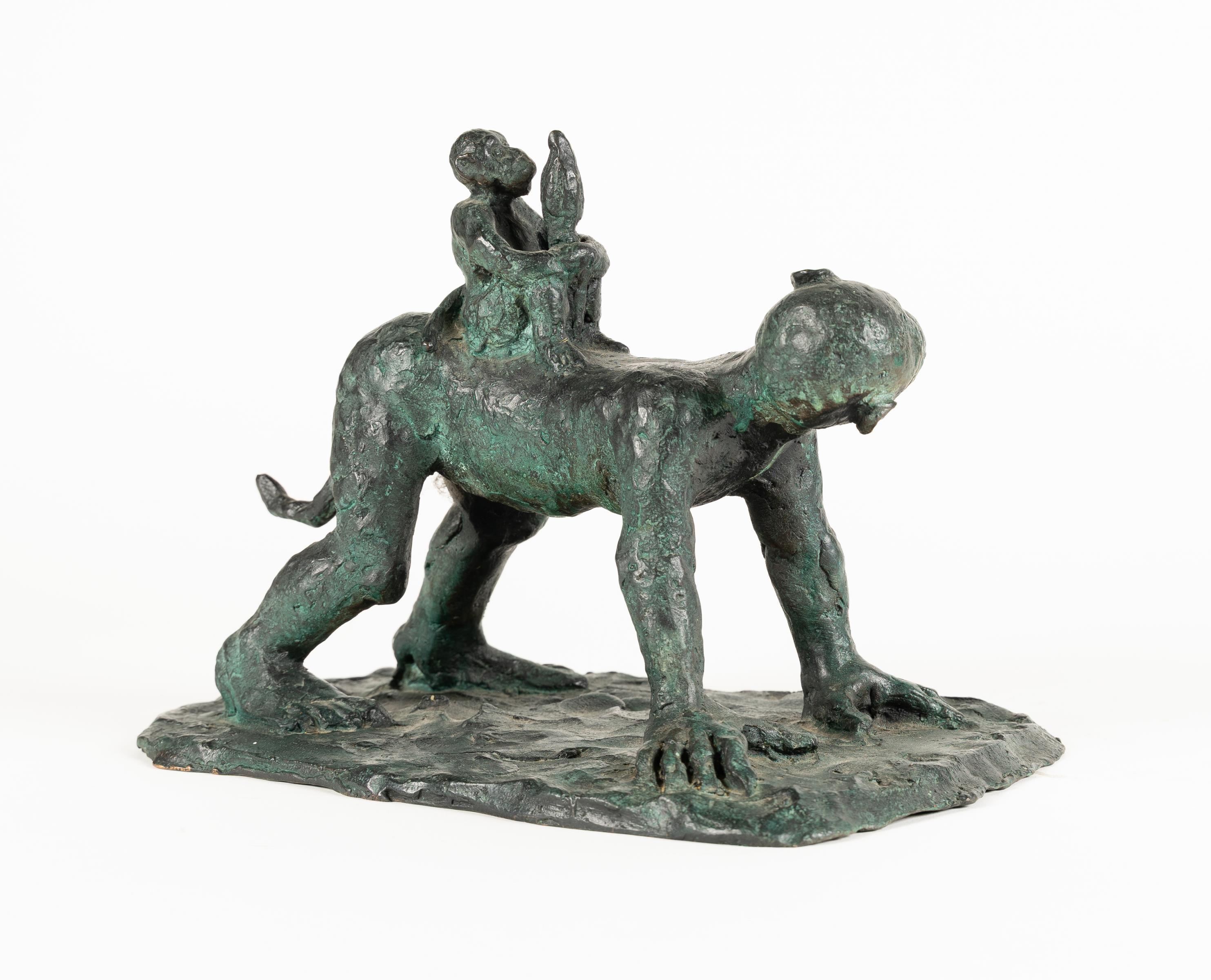 Bronze mit grünschwarzer Patina. (2002). Ca. 21 x 20 x 31 cm. Eines von 9 nummerierten Exemplaren. Signiert auf der Plinthe sowie mit dem Gießerstempel „SCHMÄKE DÜSSELDORF“.