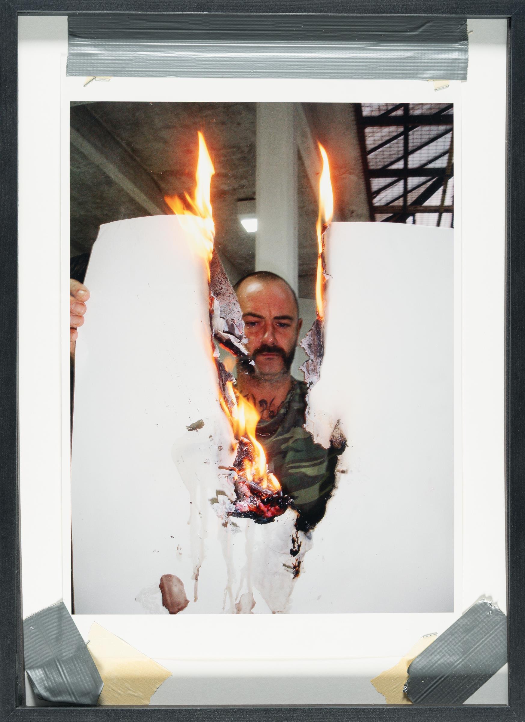 Tintenstrahldruck auf Fotopapier, Klebeband, in O.-Künstlerrahmen. (2008). Ca. 55 x 40 cm. Verso auf der Rahmenrückwand auf einem Etikett signiert.