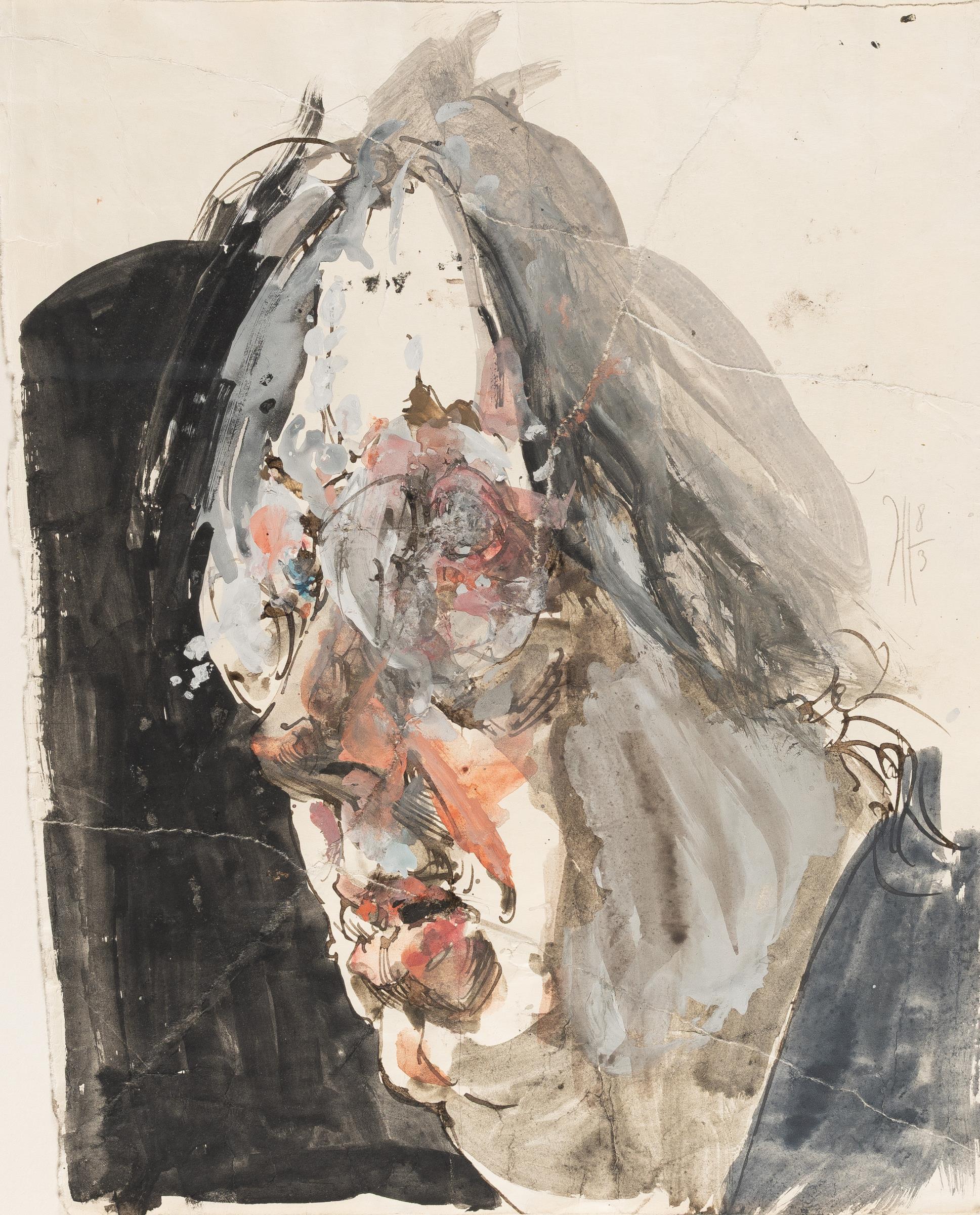 Vom Künstler intendierte Atelierspuren, werkimmanente Knickspuren und geschlossene Papierrisse, linke Blattkante schräg beschnitten, insgesamt in guter Erhaltung.