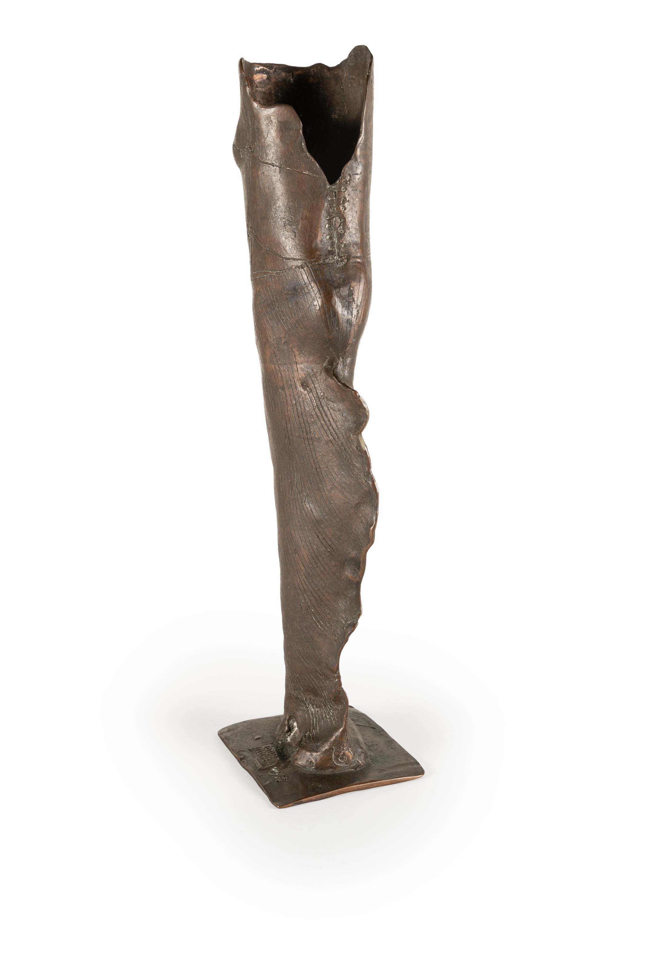 Bronze mit brauner Patina. 1972. Ca. 42 x 11 x 9 cm. Eines von insgesamt ca. 10 nummerierten, teils später gegossenen Exemplaren. Verso am Gewand vertikal signiert und datiert sowie auf der Plinthe mit dem Signaturstempel und nochmals datiert.