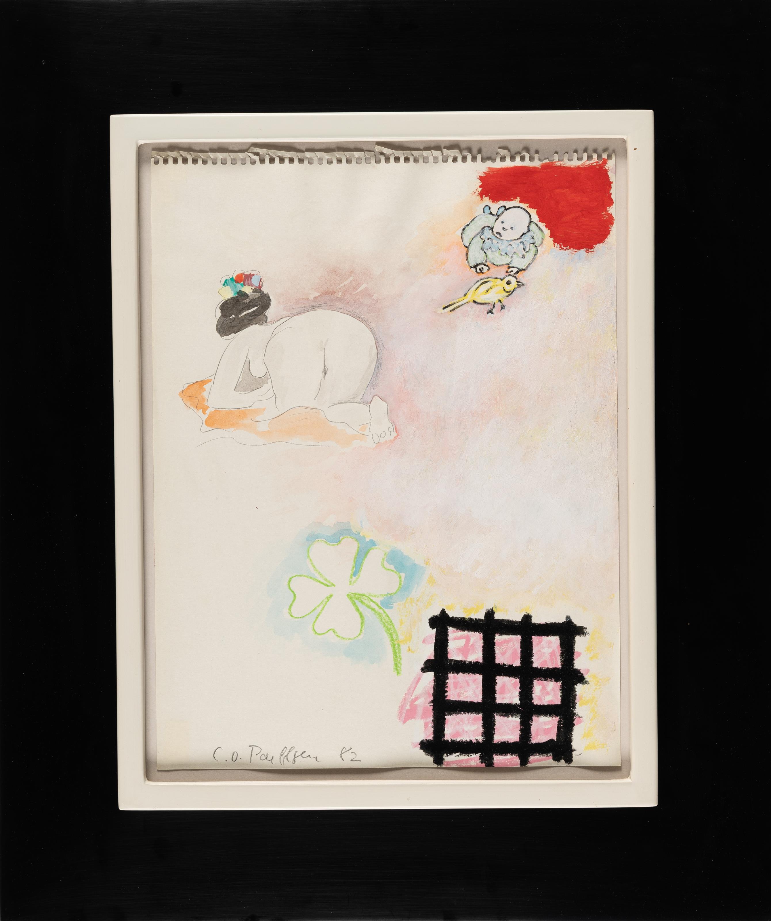 Mischtechnik mit Ölkreide, Aquarell und Bleistift auf Zeichenblockpapier mit perforiertem Rand. (19)82. Ca. 31,5 x 24 cm. Signiert und datiert unten links.