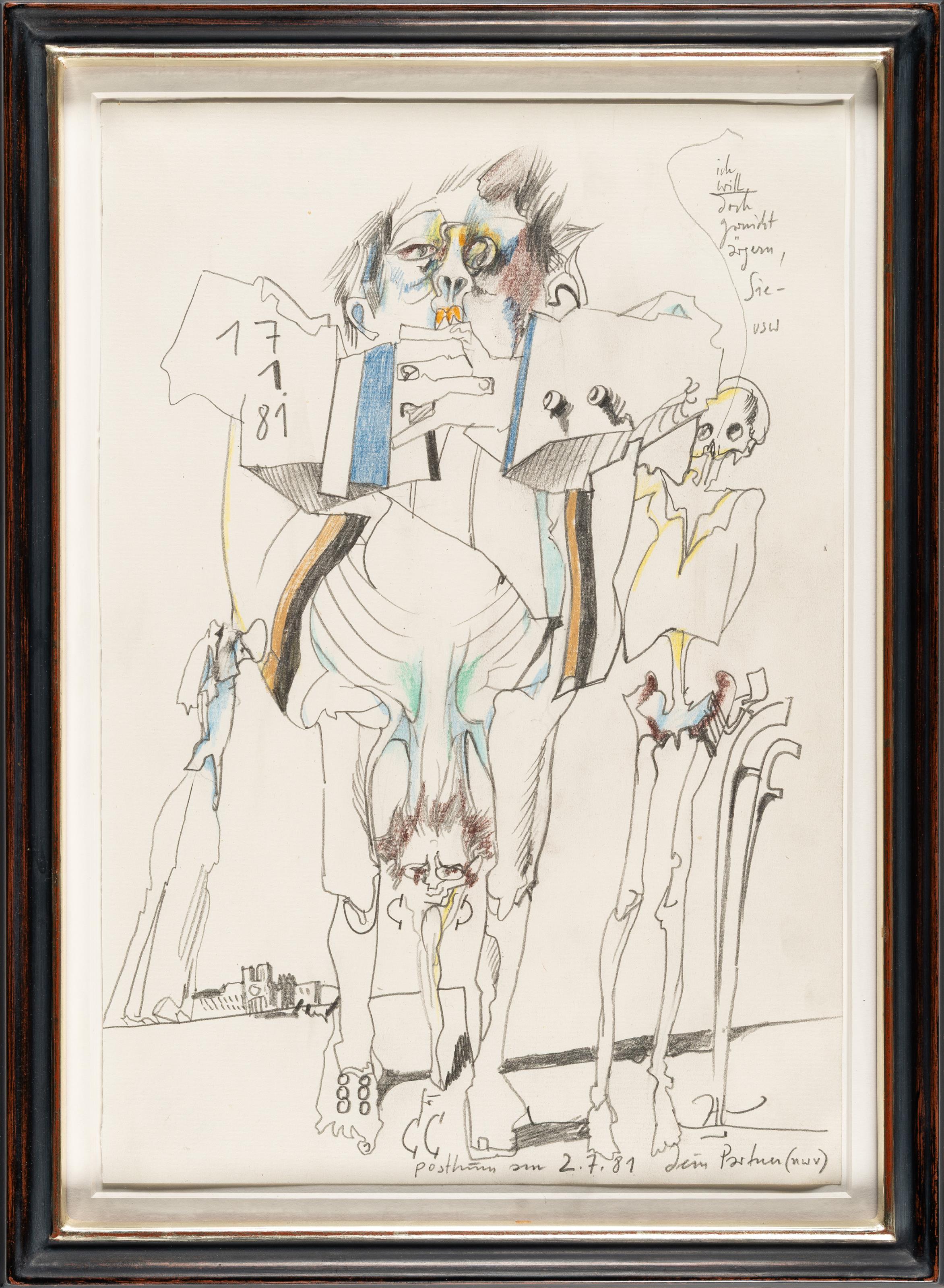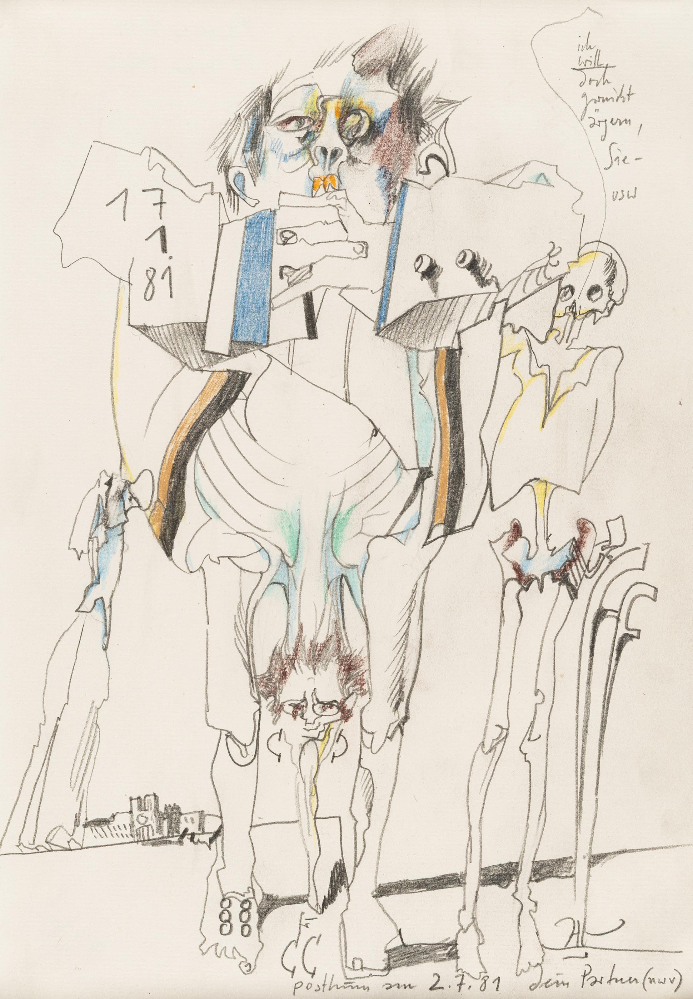 Blei- und Farbstift auf Velin. (19)81. Ca. 35 x 24 cm. Monogrammiert, zweifach datiert, bezeichnet und mit Widmung.