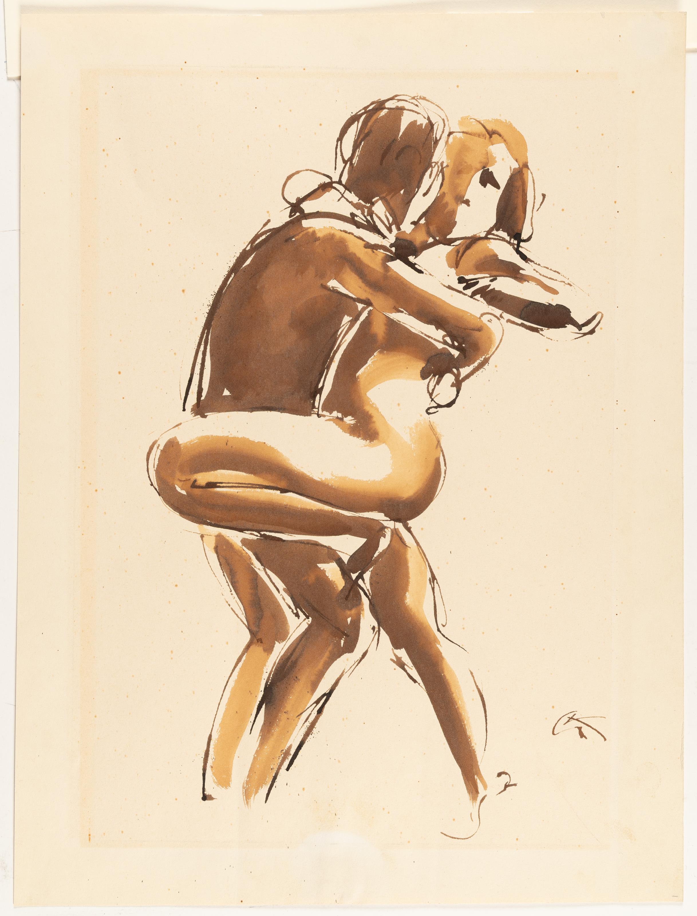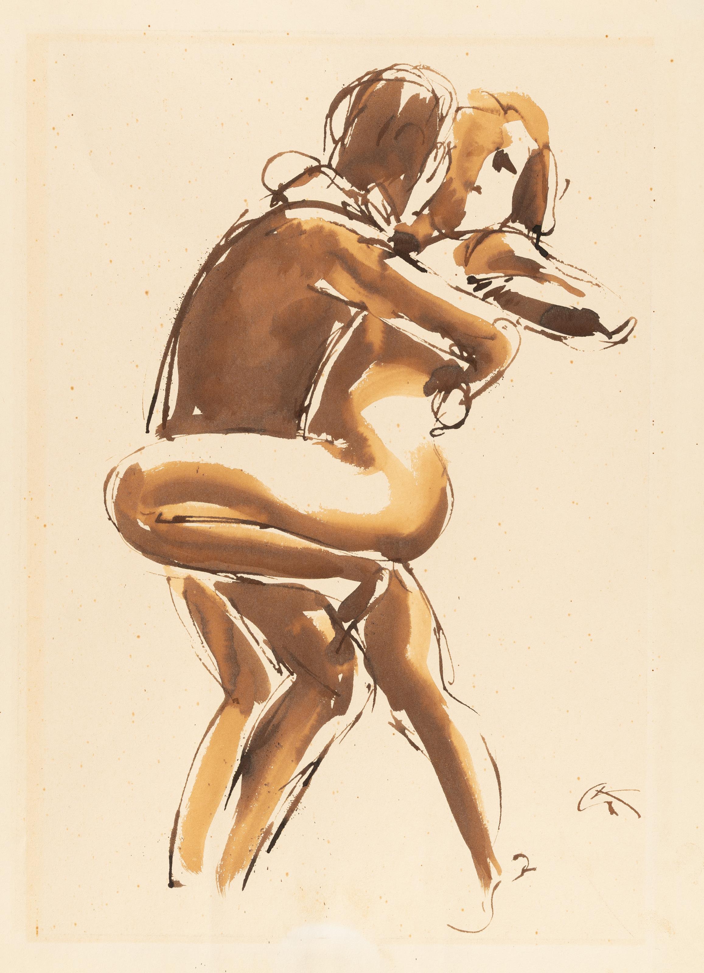 Braune Tusche, laviert, auf cremefarbenem Velin. (Wohl 1920er Jahre). Ca. 47 x 35 cm. Monogrammiert unten rechts.