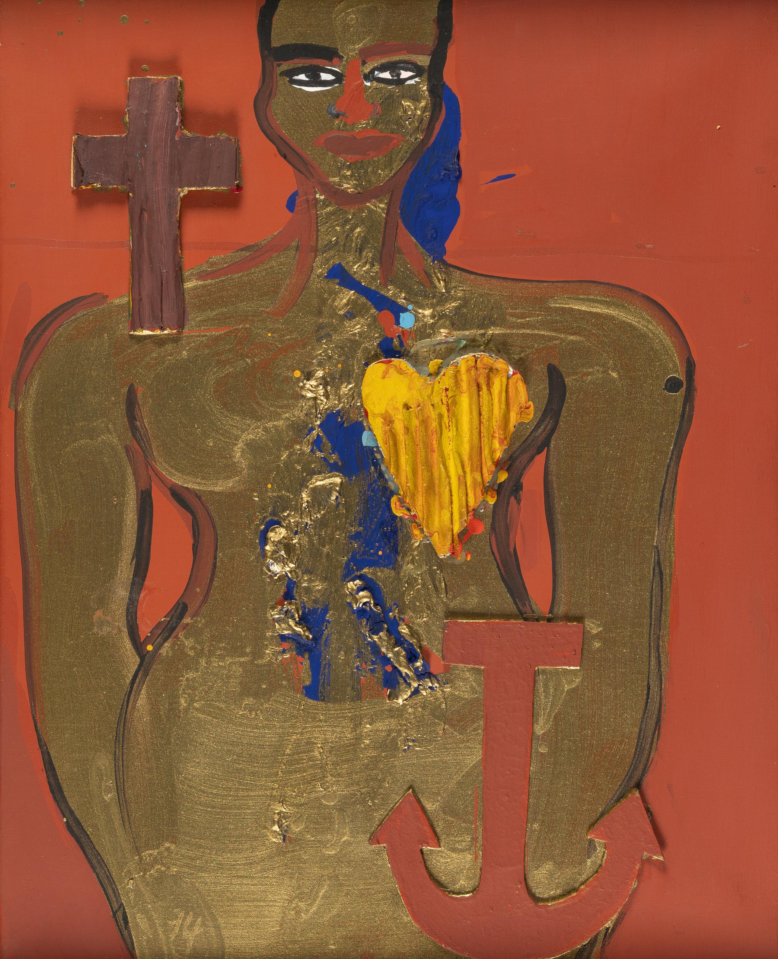 Collage mit Öl auf Leinwand und Öl auf Karton. 1994. Ca. 50 x 39,5 cm. Verso auf der Leinwand signiert und datiert.
