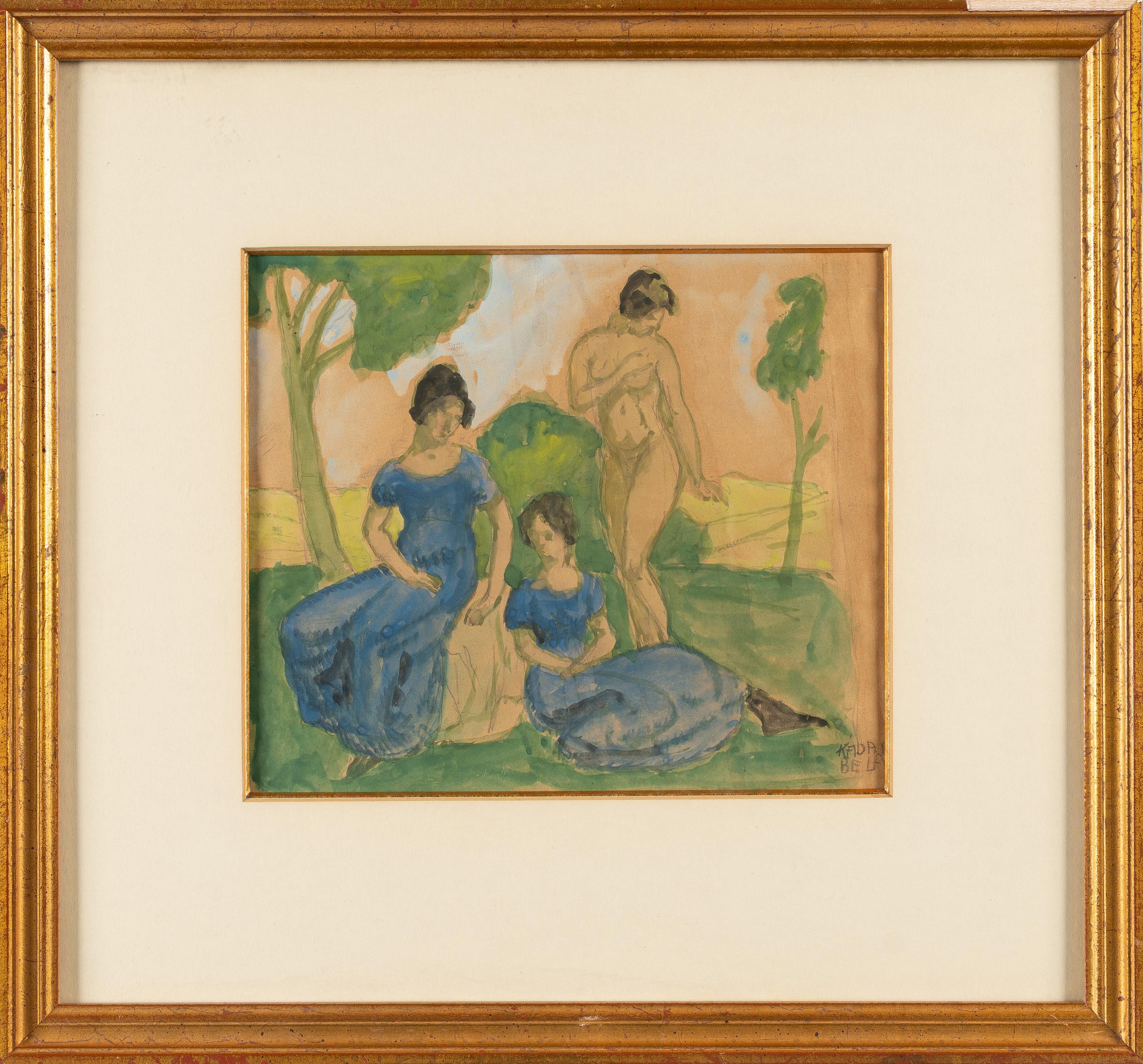 Béla Kádár Frauengruppe Vorherige Losübersicht Weiter Lot ID Los 3030 Künstler Béla Kádár 1877 - Budapest - 1956 Weitere Informationen Verso auf der Rahmenrückwand mit dem Etikett der Magyar Nemzeti Galéria, Budapest.Wir danken Herrn von Bartha, Basel, für die freundliche Unterstützung bei der Katalogisierung. Epoche Moderne Kunst Technik Arbeiten auf Papier Provenienz Germann, Zürich 23.11.2004, Los 132; Sammlung Hans Braun, Baden-Württemberg. Zu Favoriten hinzufügen PDF herunterladen Teilen Aquarell und Bleistift auf Velin. Ca. 18 x 21,5 cm. Signiert unten rechts. Beschreibung Leicht gebräunt sowie technikbedingt schwach gewellt. Insgesamt in gutem Zustand.