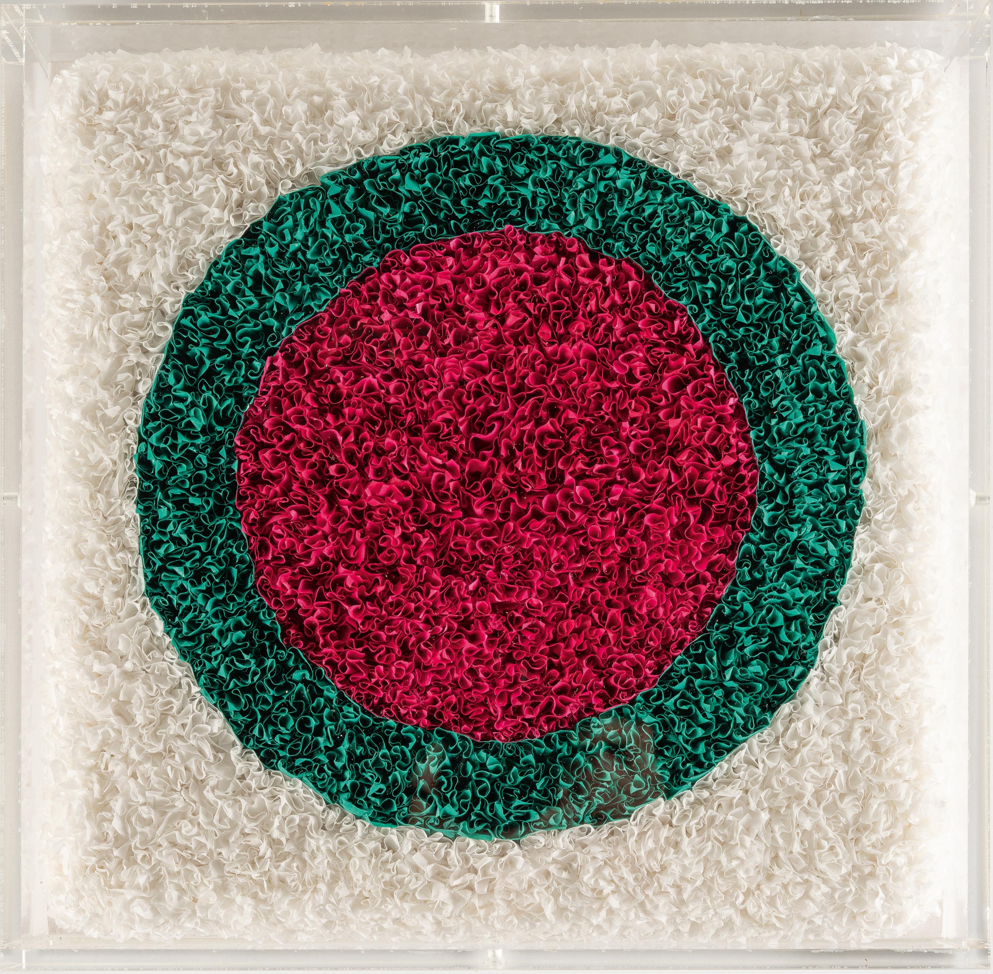 Relief. Gefaltetes Japanpapier auf Holzplatte, in Plexiglasrahmen. 2015. Ca. 30 x 30 cm (Rahmen ca. 31,5 x 31,5 cm). Eines von 12 nummerierten Exemplaren. Verso signiert, datiert und betitelt sowie u.a. mit der Werknummer "15002" bezeichnet.