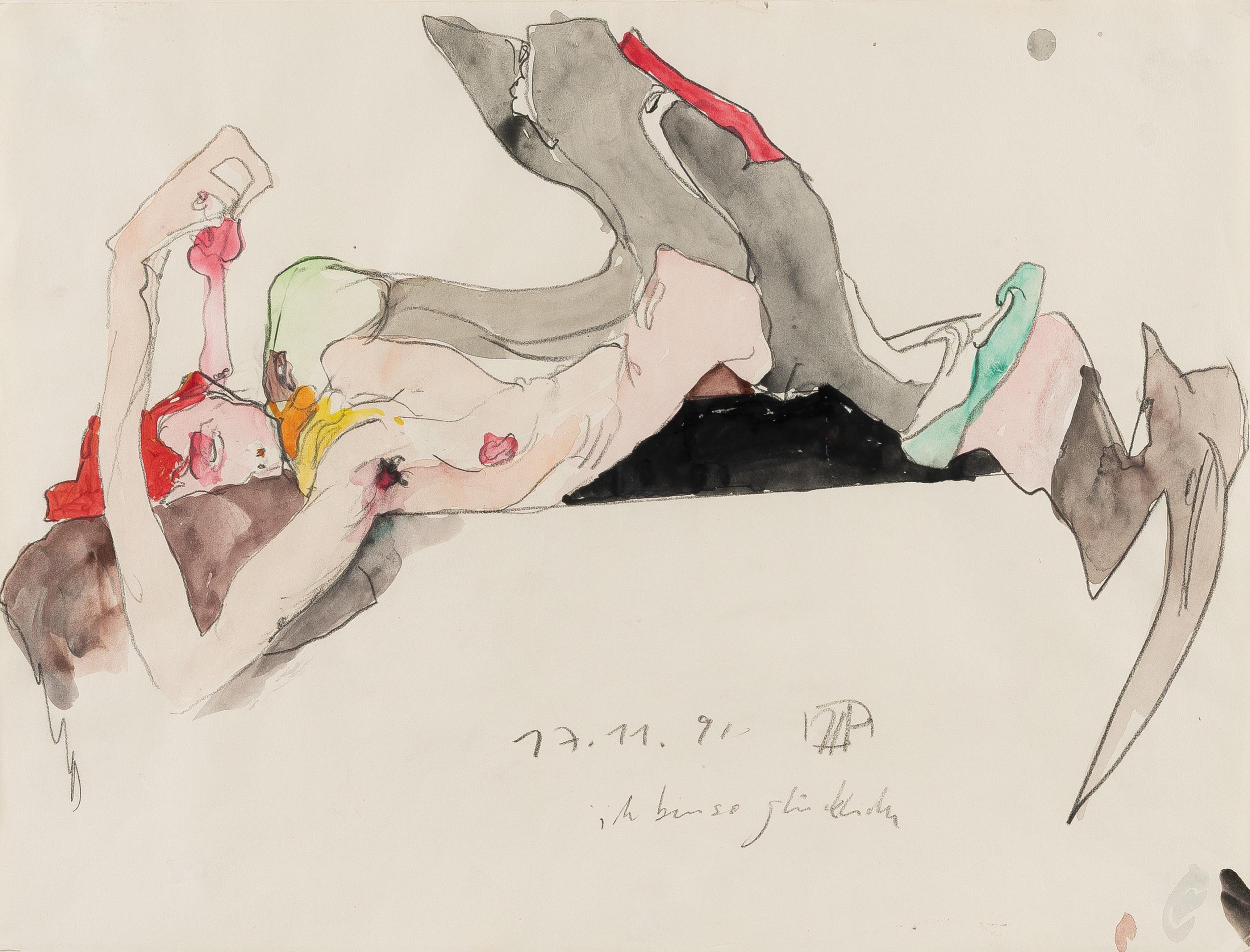 Aquarell, Gouache und Bleistift auf Velin. (19)91. Ca. 30 x 39,5 cm. Signiert, datiert "17.11.91" und betitelt unten mittig.
