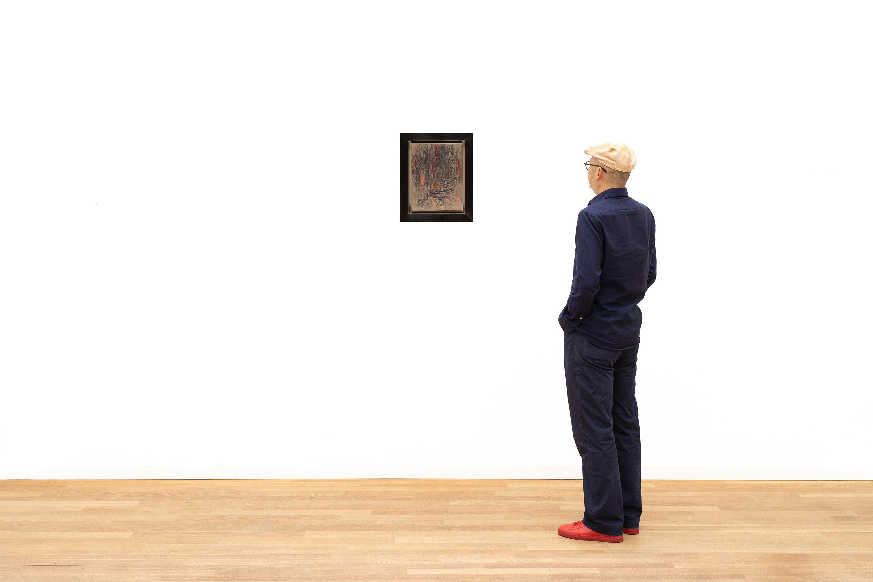 Fest in Atelierleisten und Schattenfugenrahmen montiert. Zur Katalogisierung nicht ausgerahmt. Teils minimales Craquelé in den pastosen Farbpartien, vereinzelte kleine Farbverluste. Insgesamt in guter Erhaltung.