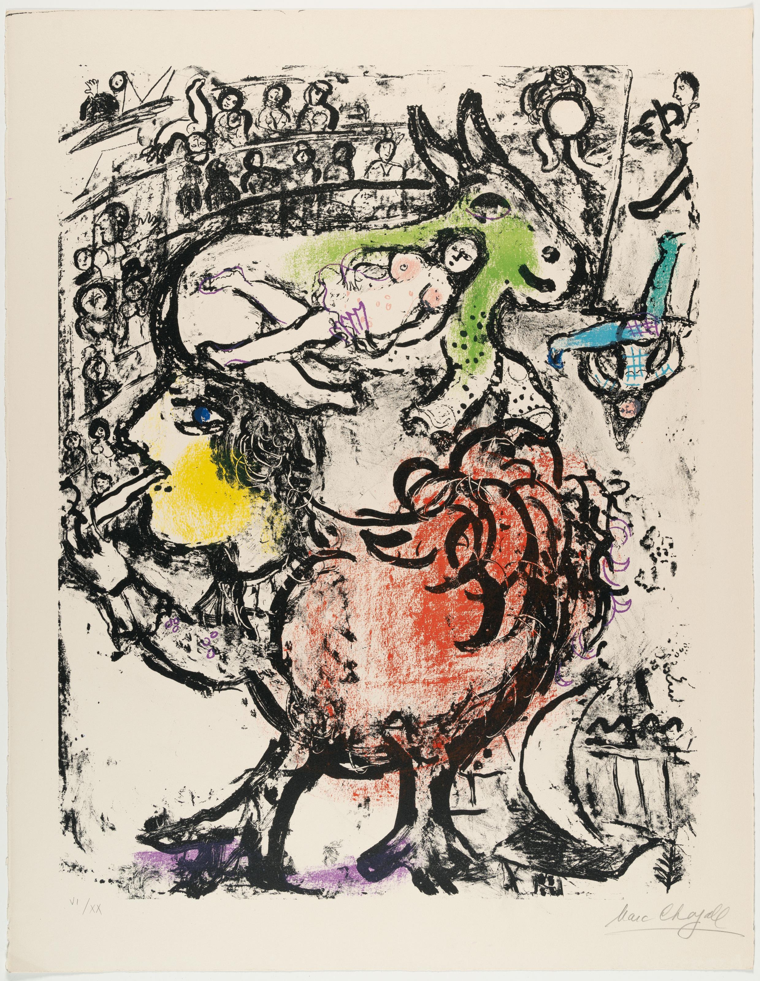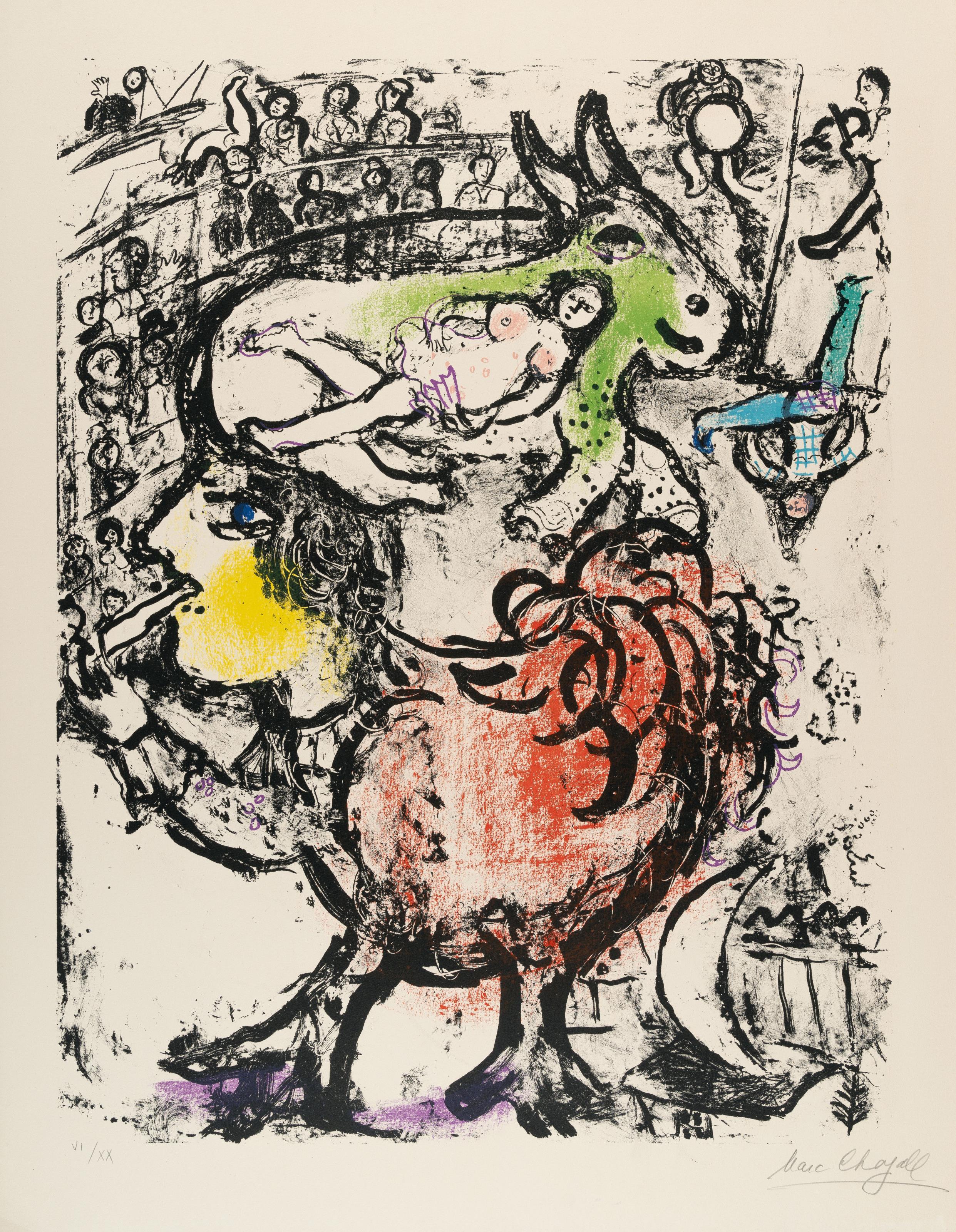 Farbige Lithografie auf chamoisfarbenem Velin von Arches. (1961). Ca. 65 x 50 cm (Blattgröße ca. 74,5 x 58 cm). Eines von 20 römisch nummerierten Probedrucken neben der Auflage von 50 Exemplaren. Signiert unten rechts.