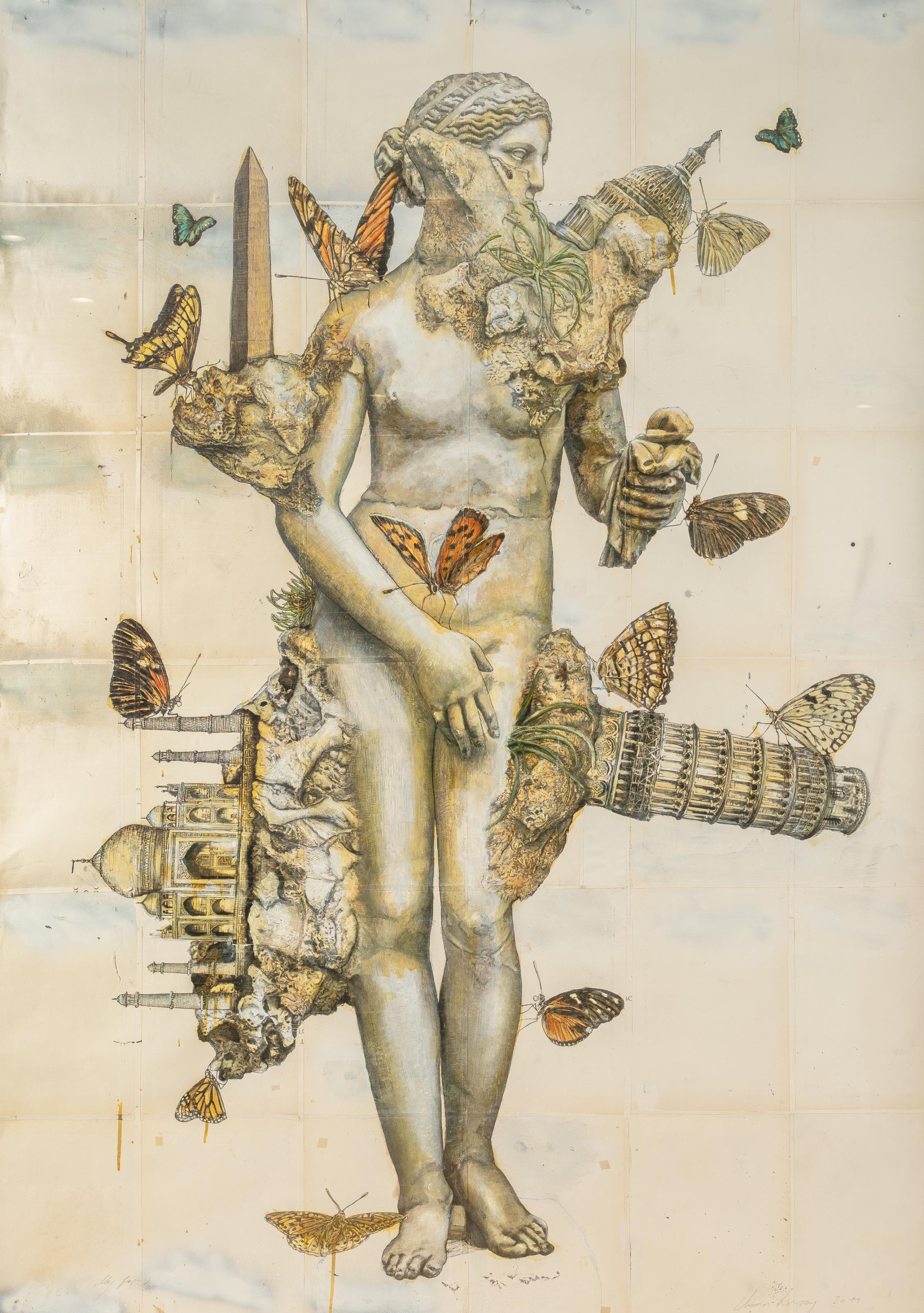 Stellenweise mit teils technikbedingten Fältchen, Bereibungen und Risschen. Haarfeines Craquelé an vereinzelten Stellen, dort mit winzigen Farbabplatzungen. Kanten partiell minimal bestoßen sowie mit vereinzelten winzigen Einrisschen. Insgesamt in gutem Zustand.
