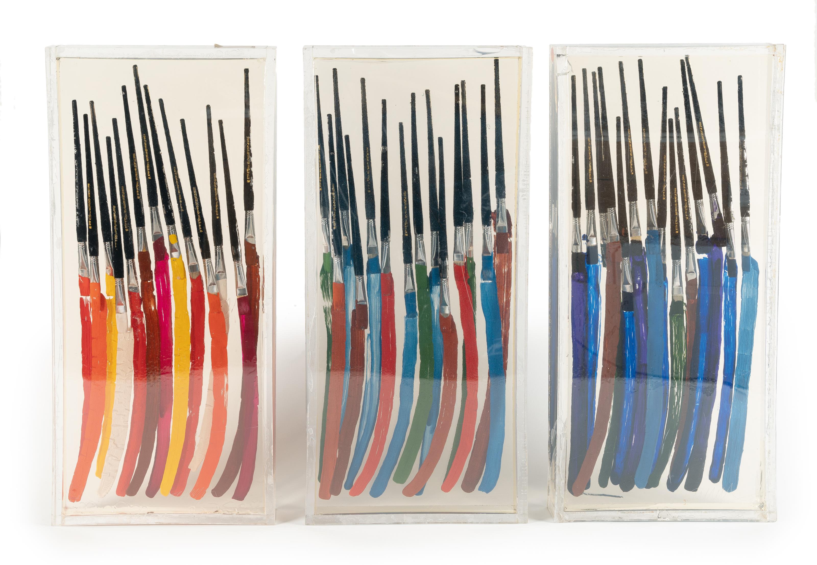 Akkumulation mit Pinseln und Farbe (3-teilig). (1991). Je ca. 66 x 30,5 x 5,5 cm. Eines von 20 nummerierten Exemplaren. Mit eingeritzter Signatur unten rechts.