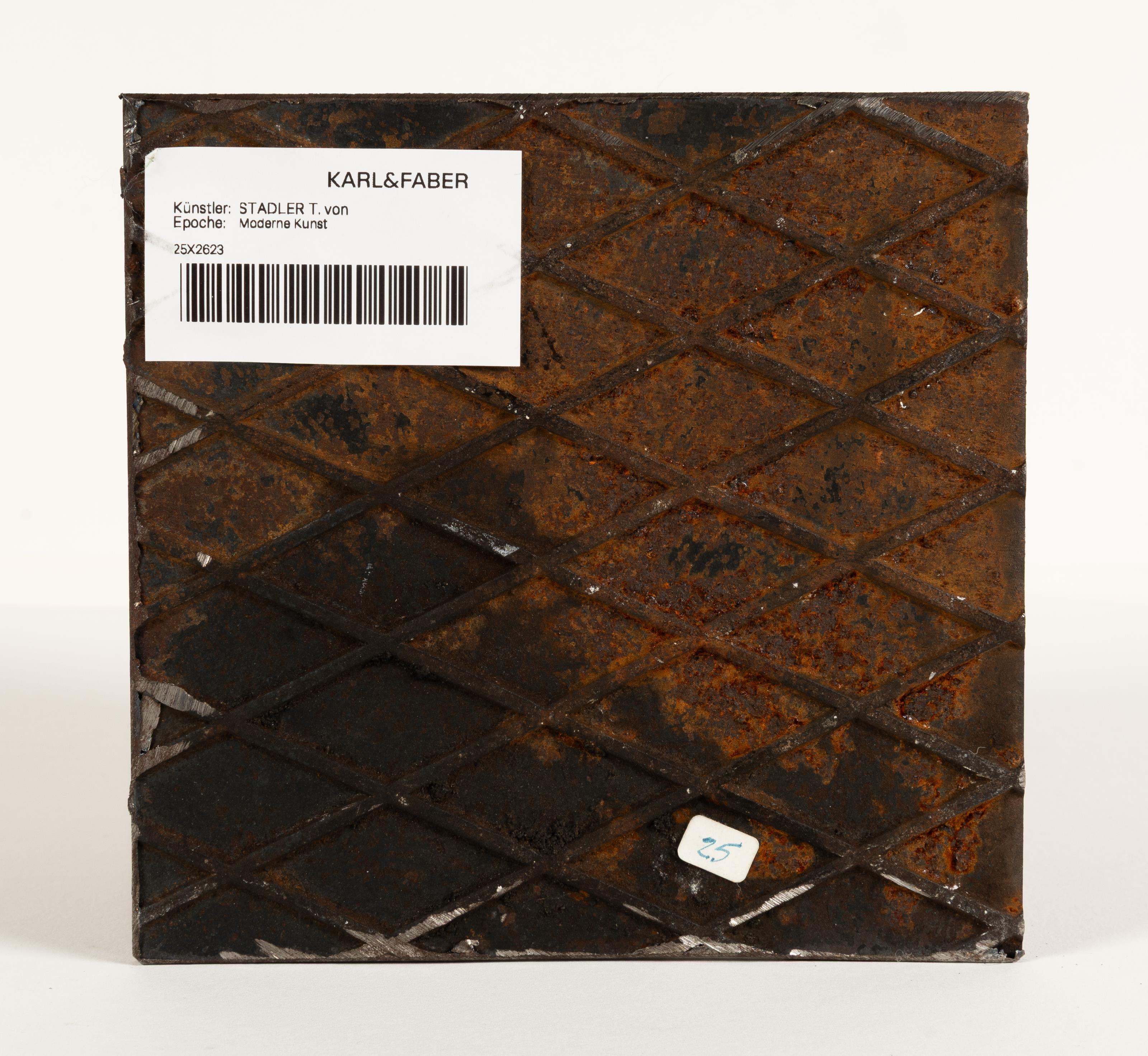 Partiell leicht berieben und mit kleinen dunklen Wachsanhaftungen, am Halsansatz mit verschiedenen Materialergänzungen vom Künstler. Metallplinthe leicht rostig und mit Etikettspuren. Insgesamt in guter Erhaltung.