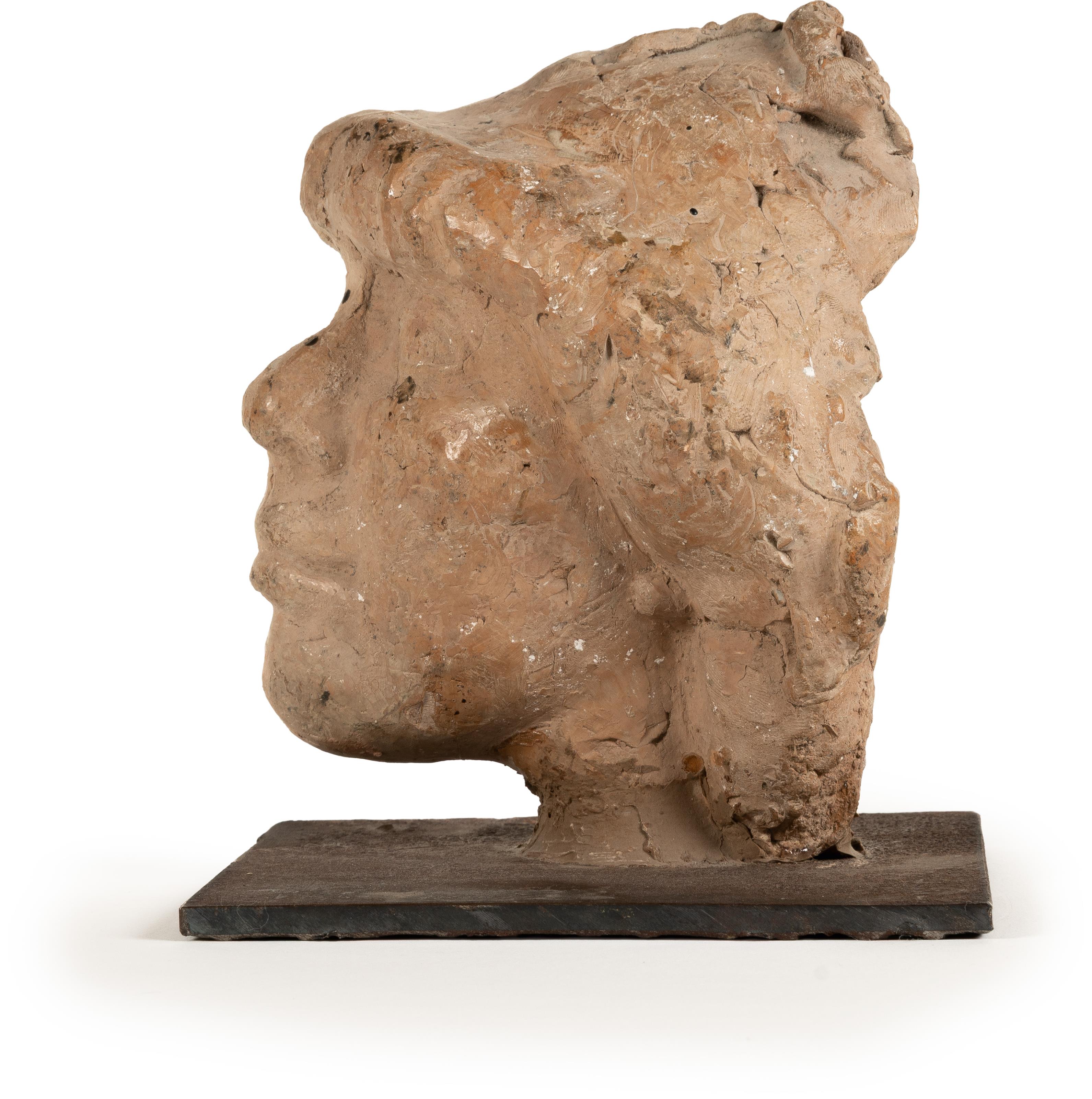 Terrakotta, auf Metallplinthe montiert. (1946). Gesamt ca. 17,5 x 14,5 x 15 cm. Unikat.