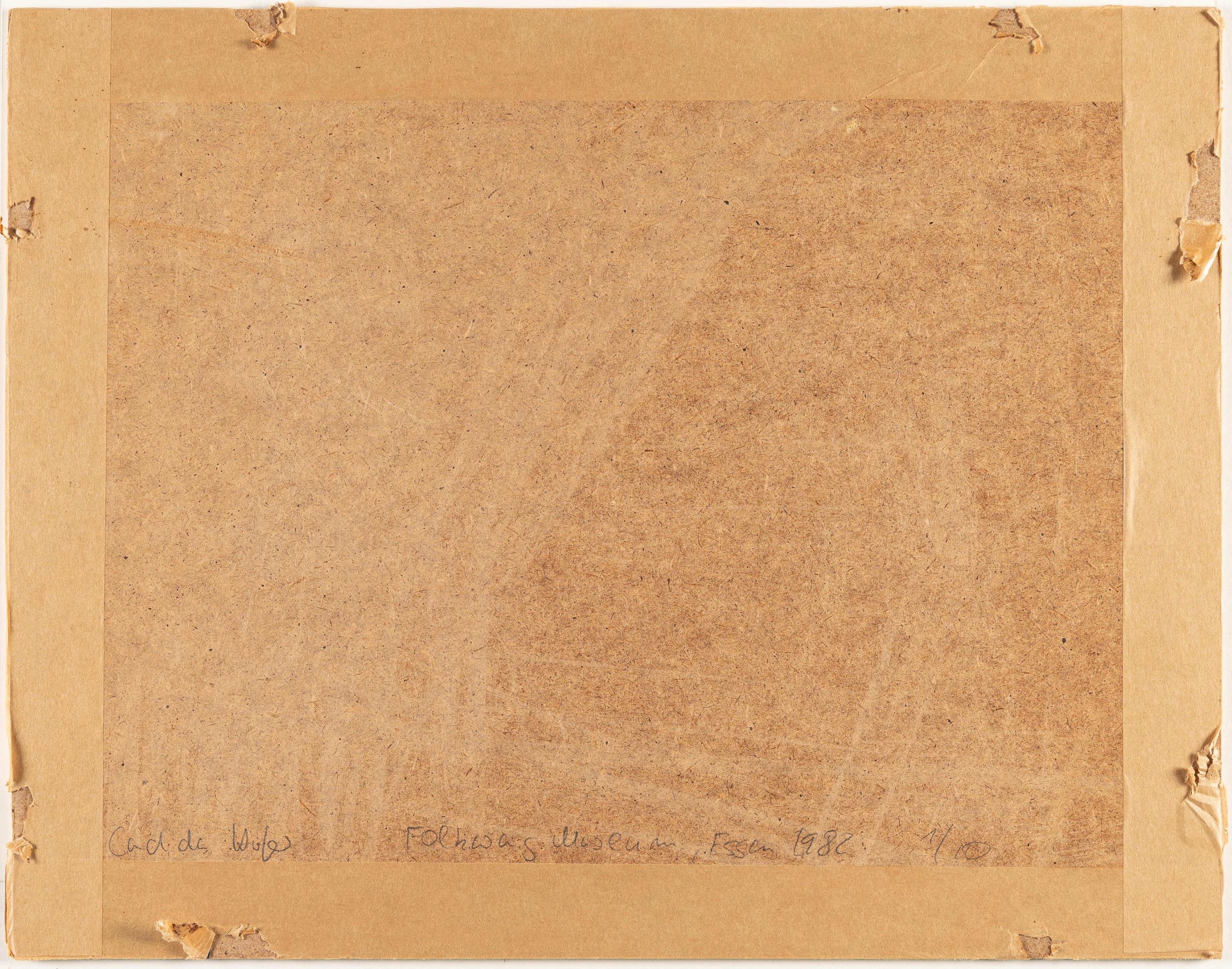 Farbe unregelmäßig verblasst und leicht verfärbt, etwas deutlicher innerhalb des Passepartoutausschnittes. Ecken minimal bestoßen, vereinzelte oberflächliche Handhabungsspuren. Ansonsten gut erhalten.