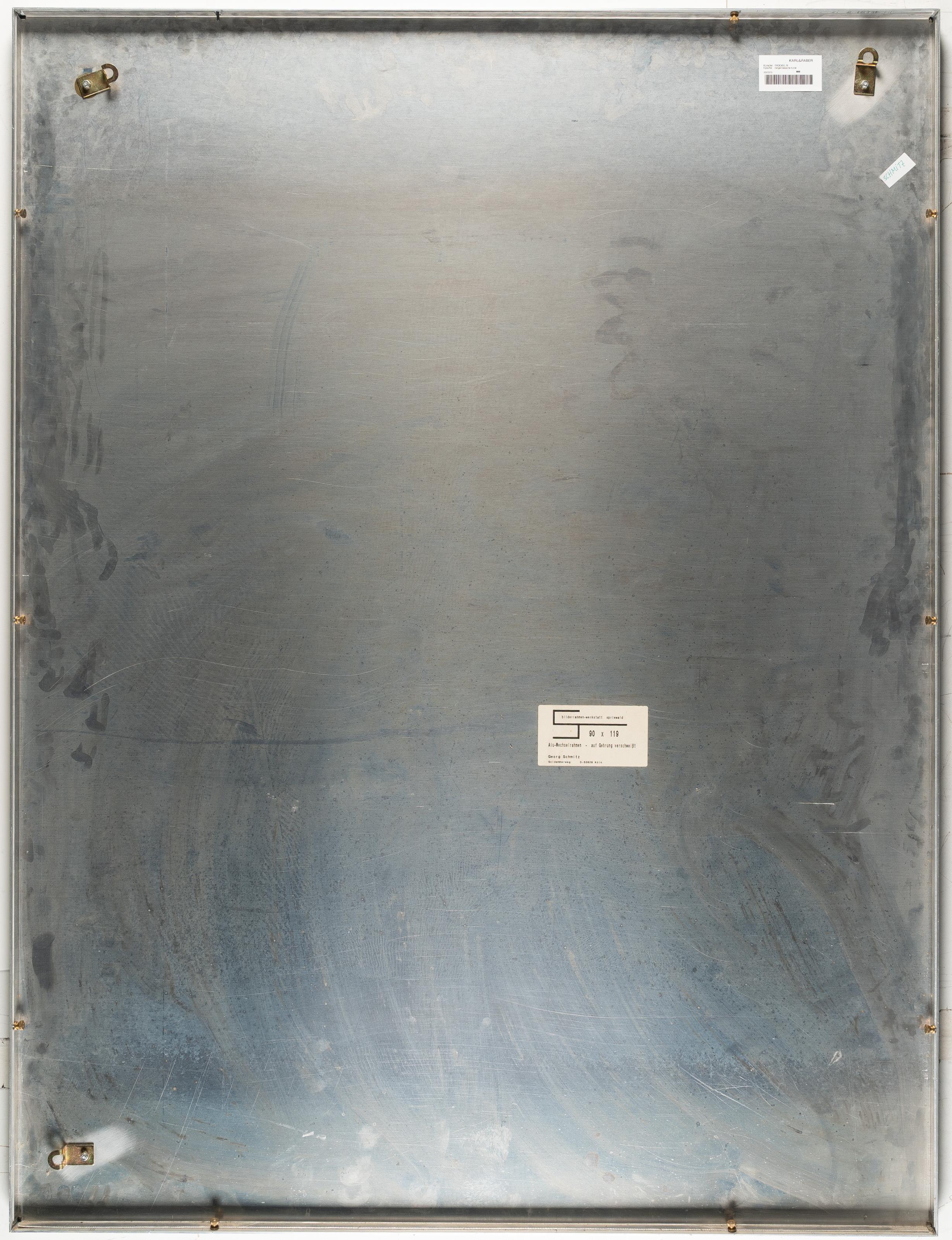 Zur Katalogisierung nicht ausgerahmt. Partiell minimale Staubablagerungen und leichte Verschmutzungen innerhalb des Rahmens. Folie stellenweise mit hellen Alterungsspuren. Ansonsten in gutem Zustand.