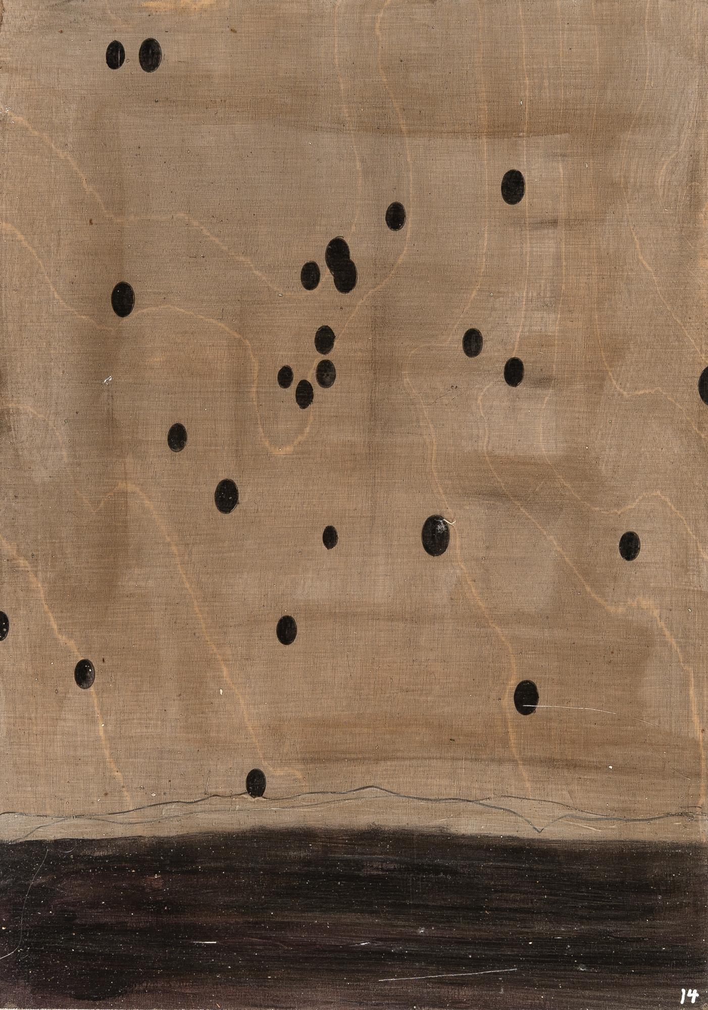 Öl, Acryl und Bleistift auf Holz, fest auf Papier und Rahmenrückwand montiert. (20)05. Ca. 34 x 24 cm (Gesamtmaße ca. 40 x 30 cm). Nummeriert „14“ unten rechts. Verso auf der Rahmenrückwand signiert, datiert und betitelt. Im O-Künstlerrahmen.