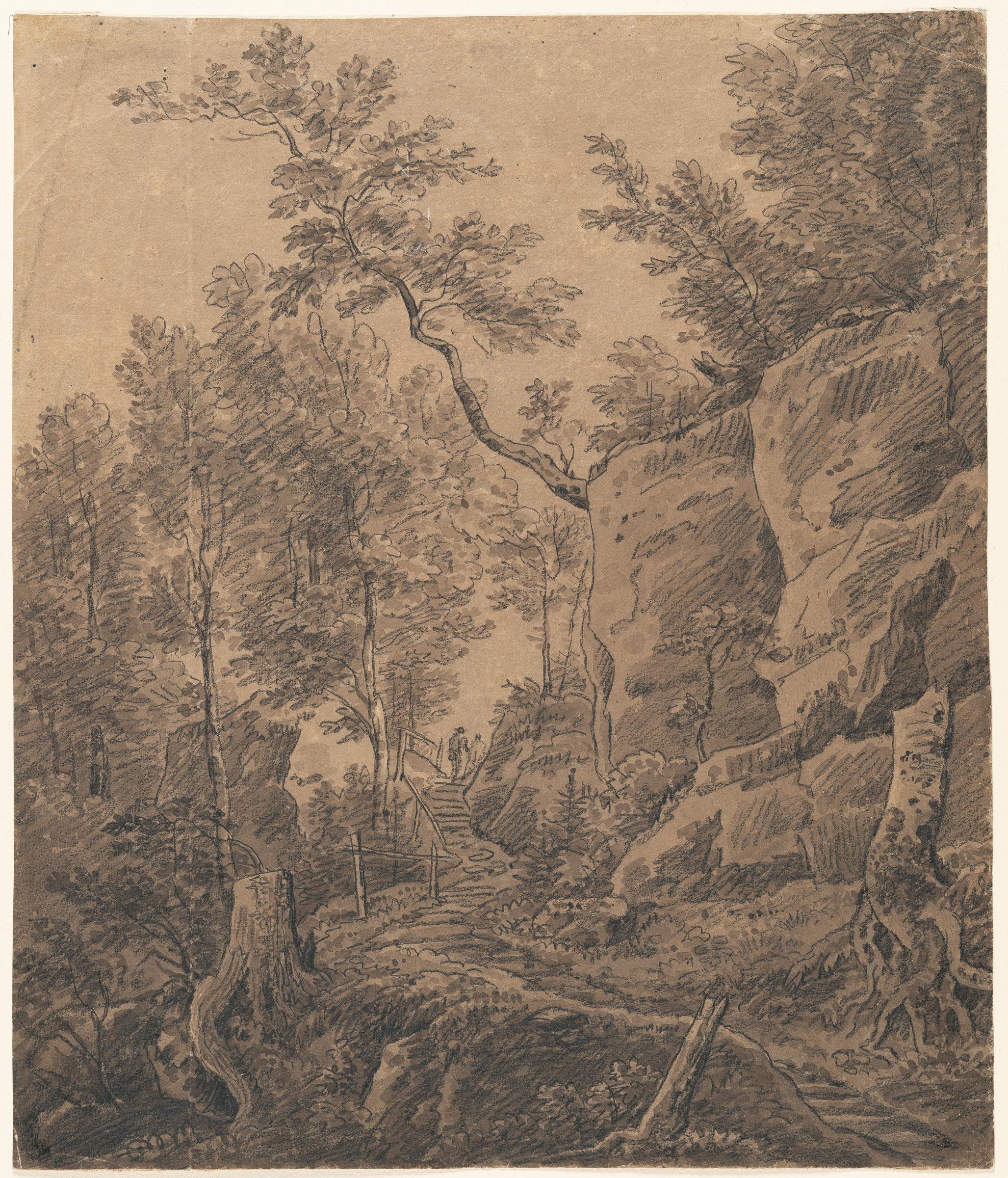 Schwarze Kreide, braun laviert, auf bräunlichem Velin. 41,8 x 35,5 cm.