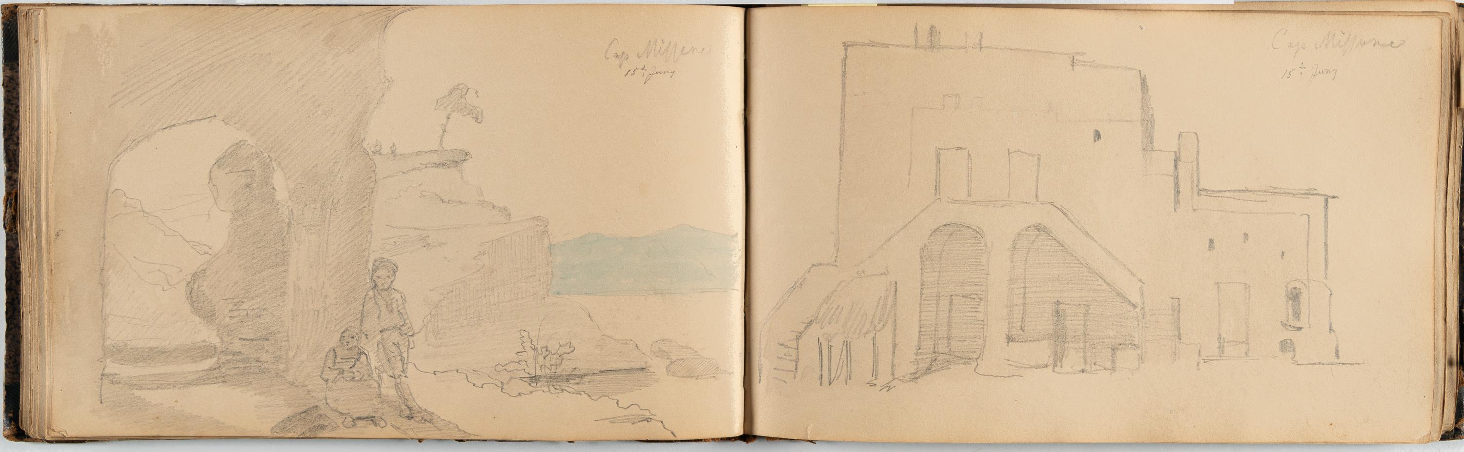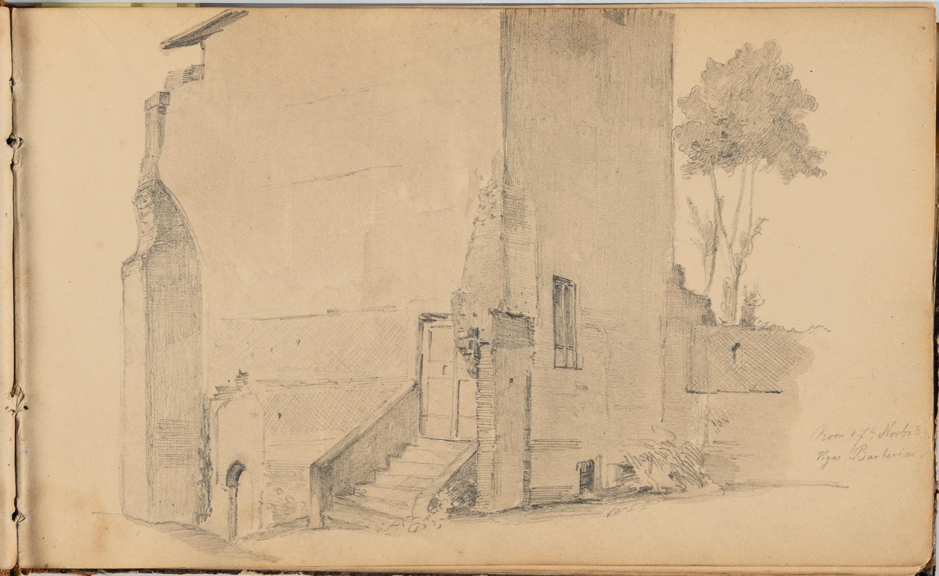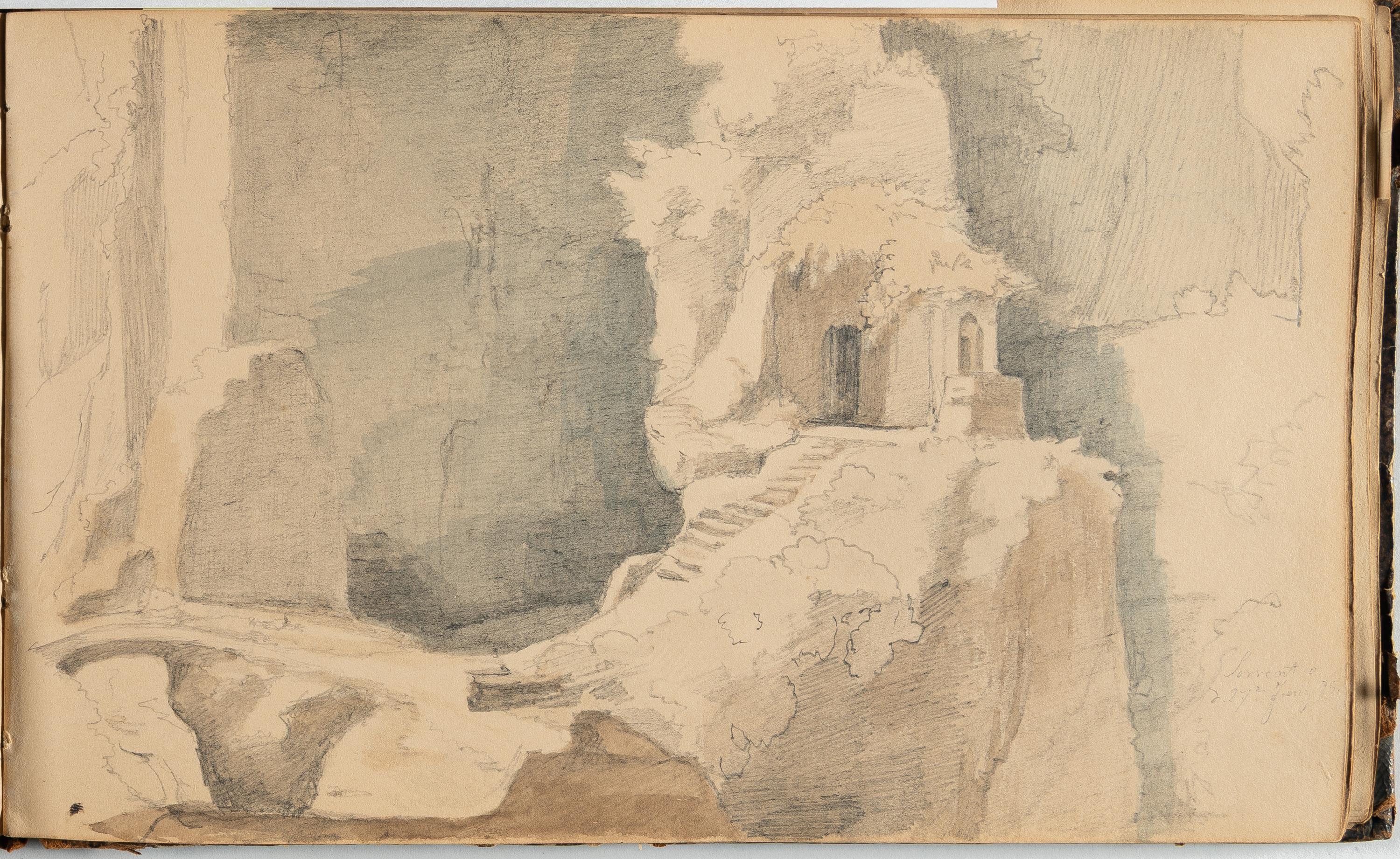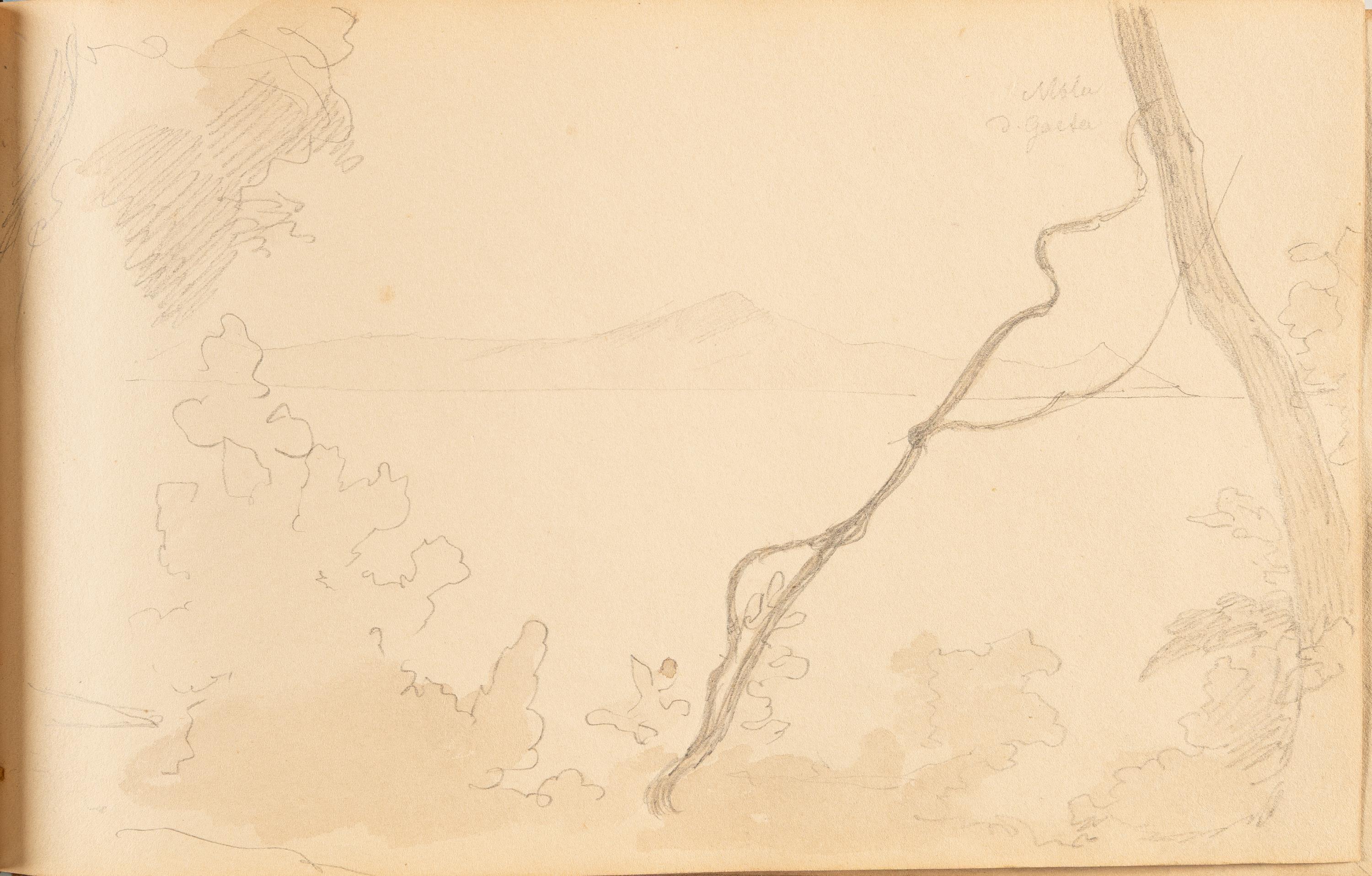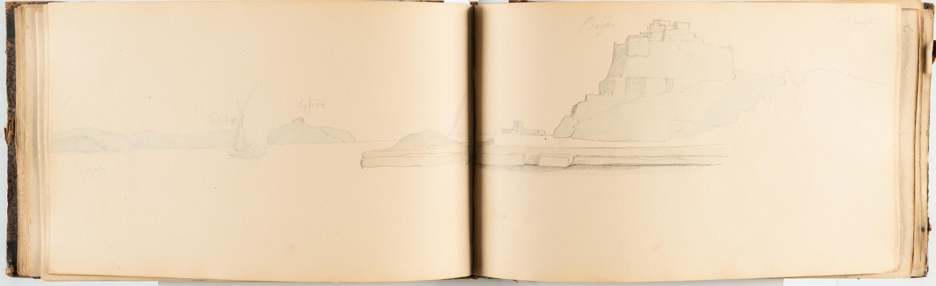 Bleistift, teils aquarelliert bzw. grau laviert, auf Velin, in O-HLdr. Nov. 1834 bis Juli 1835. 51 Bll., 102 Seiten, davon 68 Seiten mit Skizzen, darunter eine Seite lose einliegend. 12,8 x 21 cm. Teils topografisch bezeichnet und datiert.