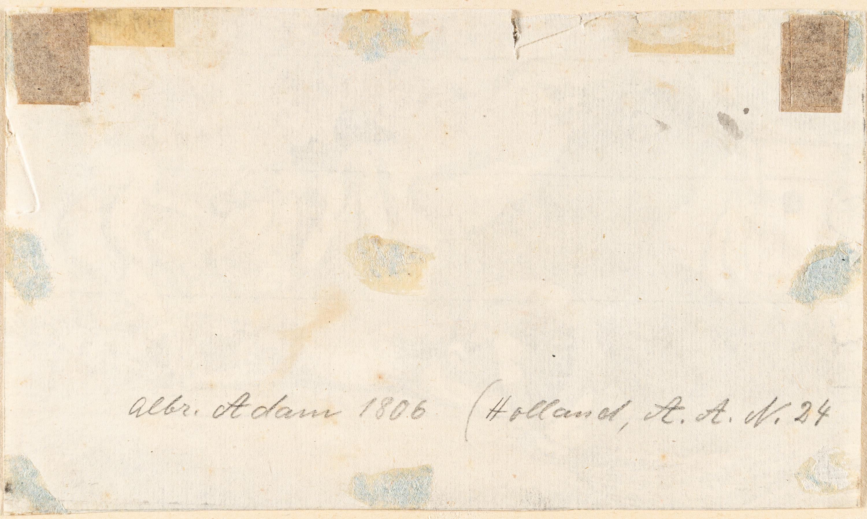 Feder in Schwarz, grau laviert, auf Bütten. 1806 (1). 12 x 19,3 cm und 10,9 x 18,8 cm. Das zweite Bl. unten rechts datiert und bezeichnet „1806 Alb Adam del. et fec“.